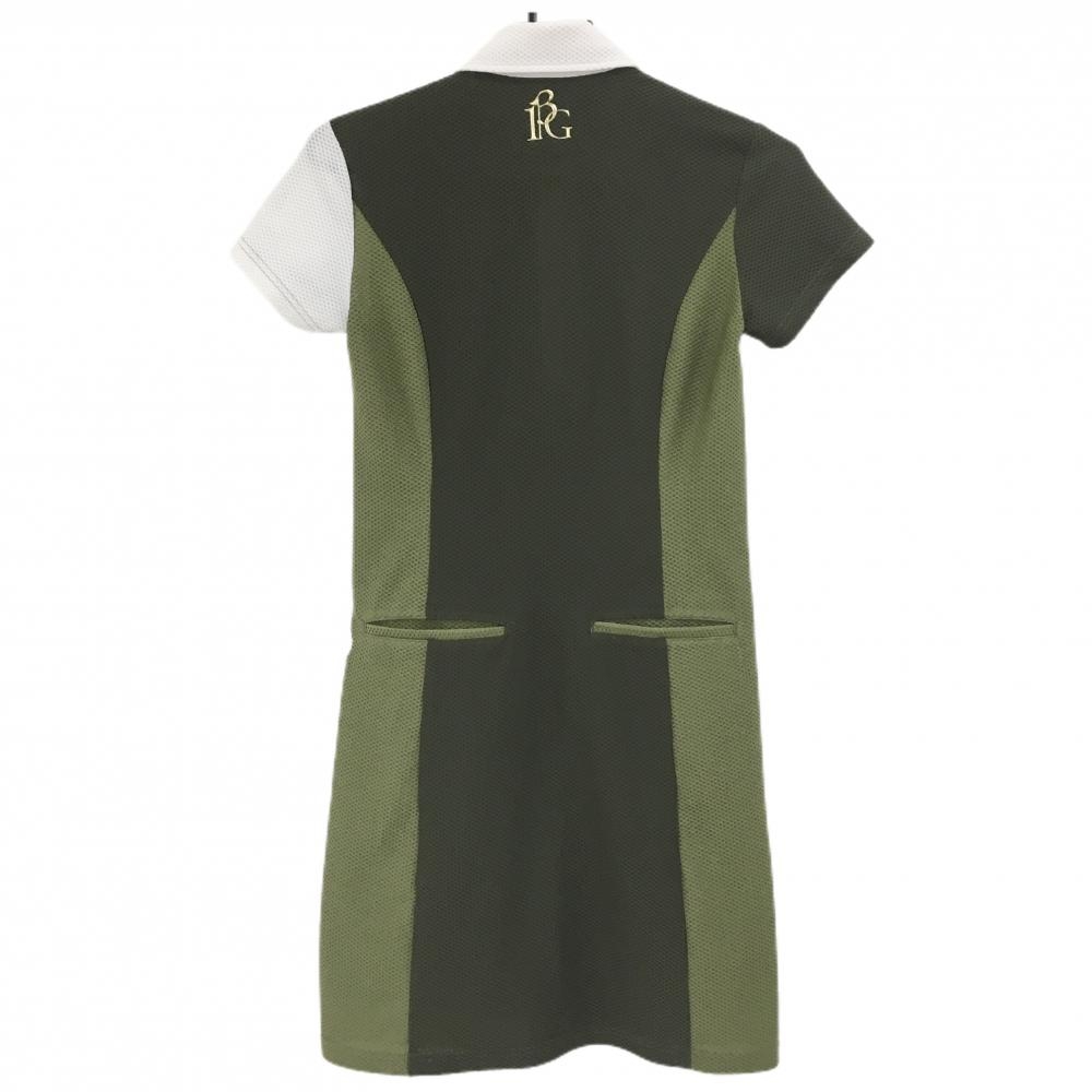 【美品】ウノピゥウノウグァーレトレゴルフ ワンピース カーキ×白 凹凸織生地 裾サイドロゴ レディース 1(S) ゴルフウェア 1PIU1UGUALE3