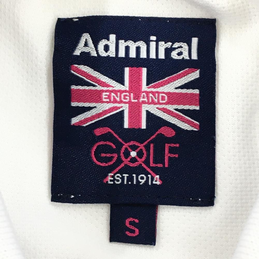 【超美品】アドミラル 半袖ポロシャツ 白 ドット地模様 ロゴシルバー レディース S ゴルフウェア Admiral