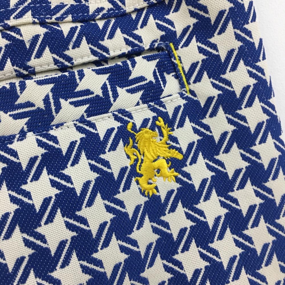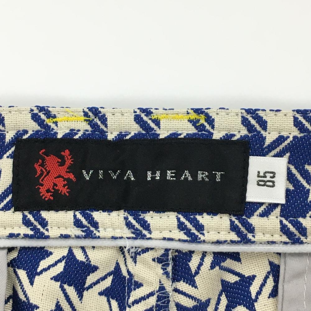 【超美品】ビバハート パンツ ブルー×オフホワイト 総柄 バックロゴ刺しゅう メンズ 85 ゴルフウェア VIVA HEART