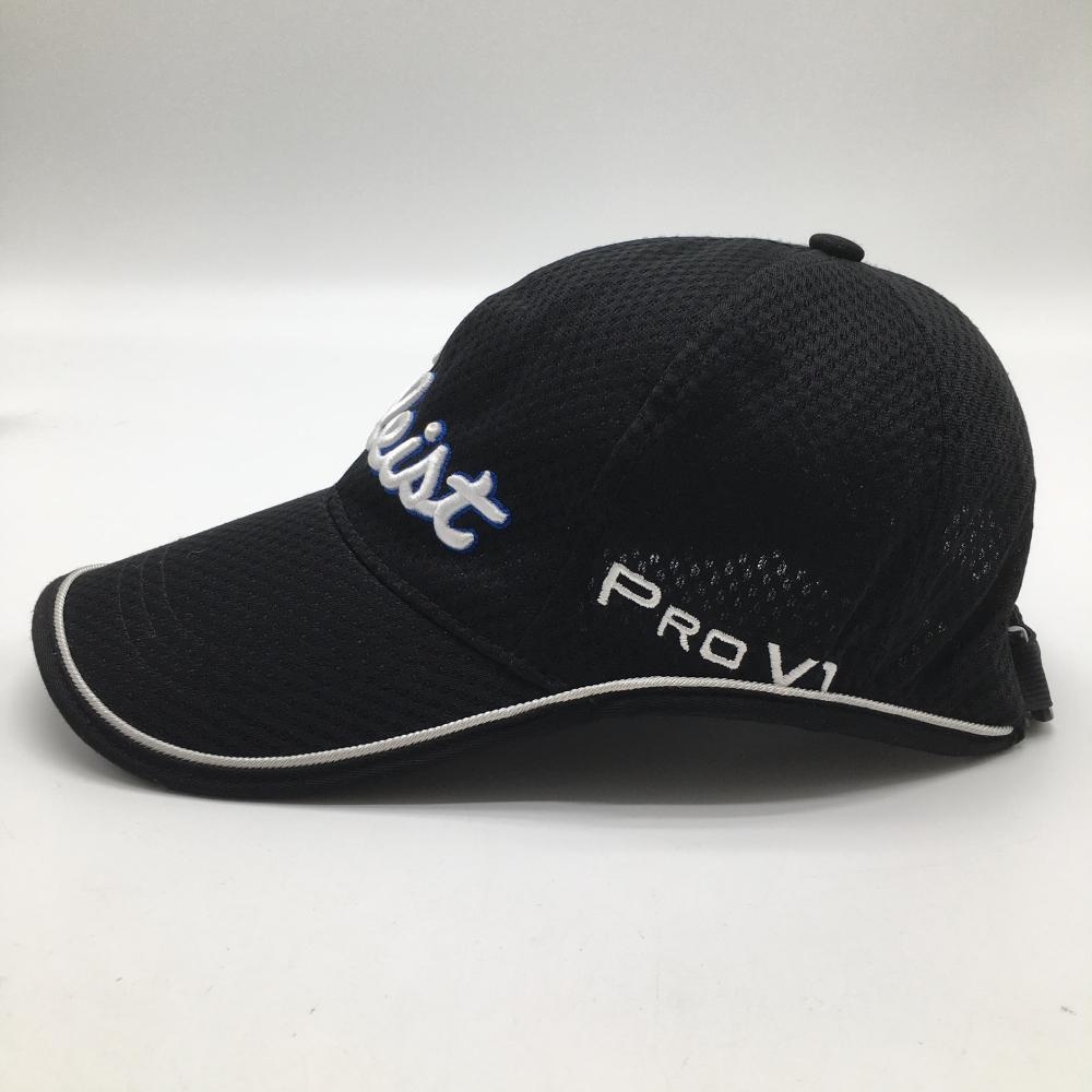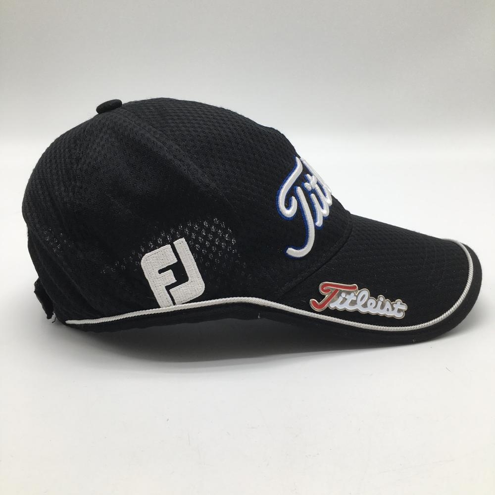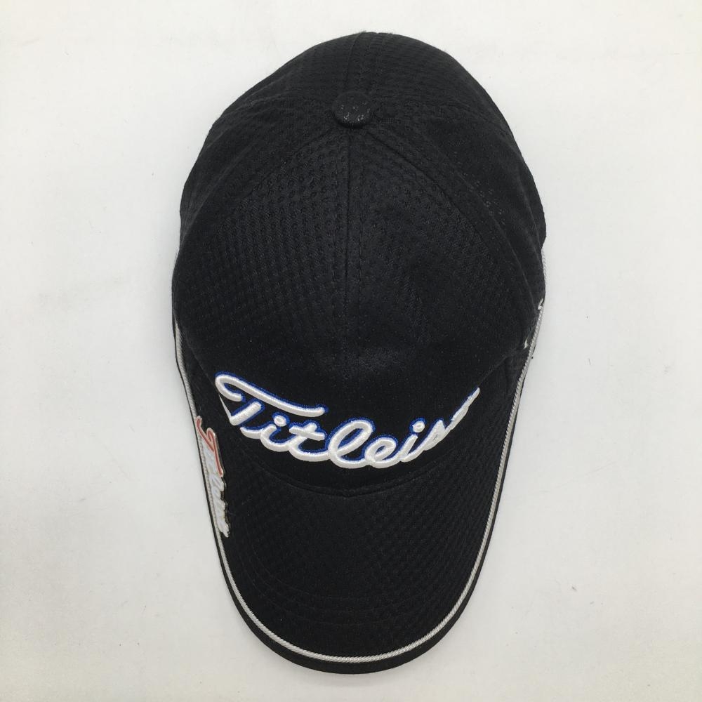 【美品】タイトリスト キャップ 黒×白 メッシュ調 ロゴ刺しゅう ゴルフウェア TITLEIST
