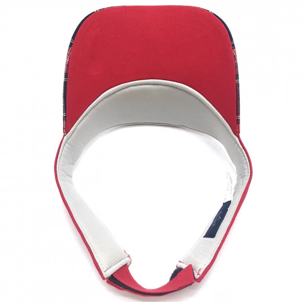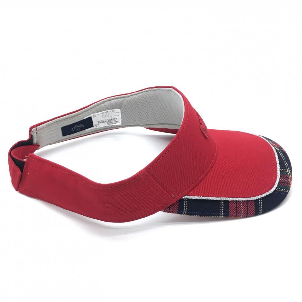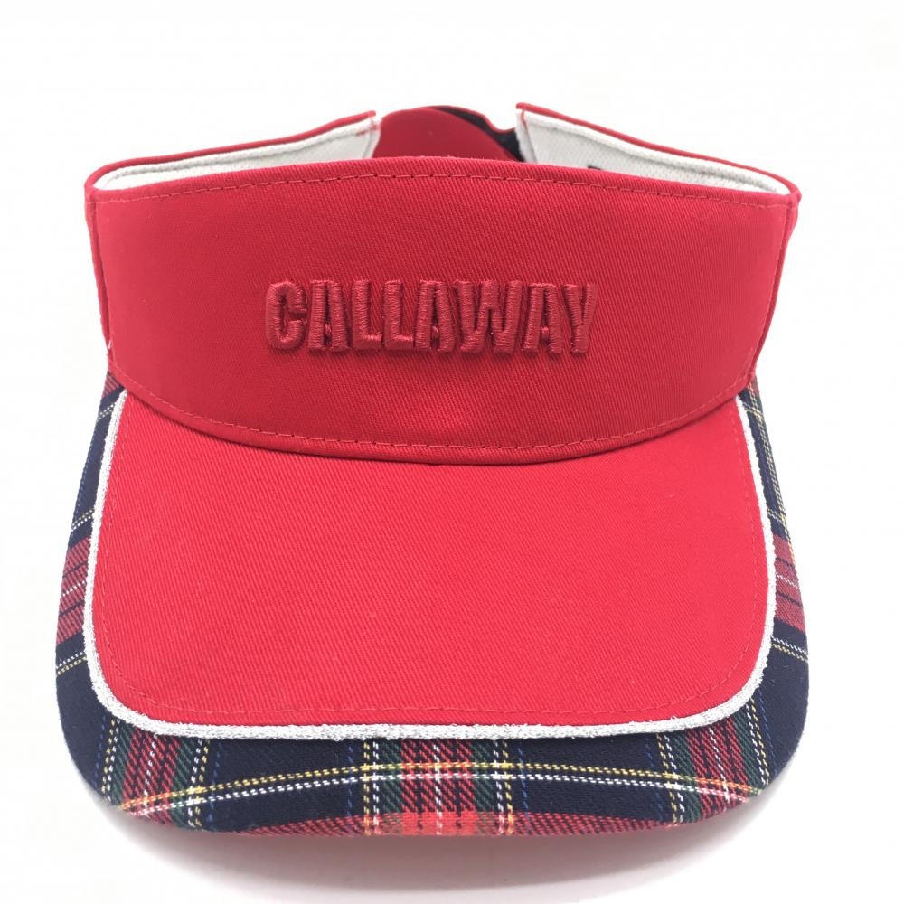 キャロウェイ サンバイザー レッド×ネイビー つば縁チェック 立体ロゴ刺しゅう FR ゴルフウェア Callaway