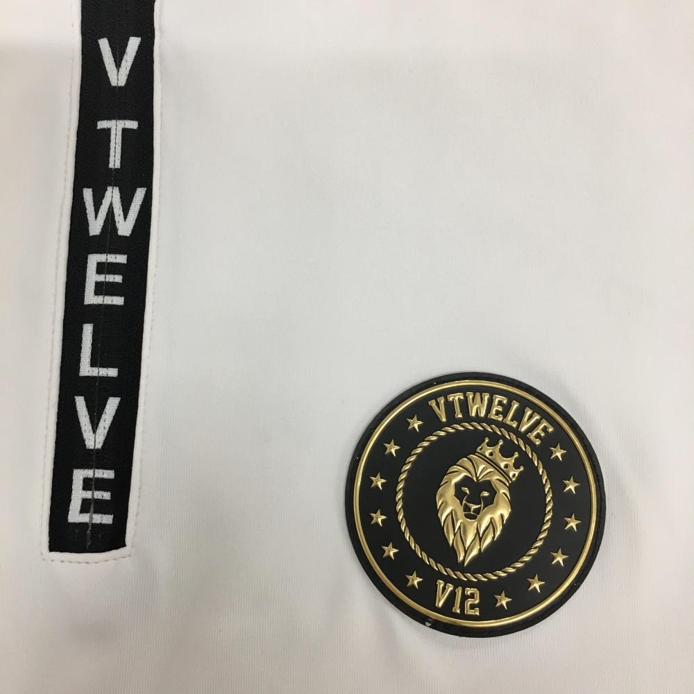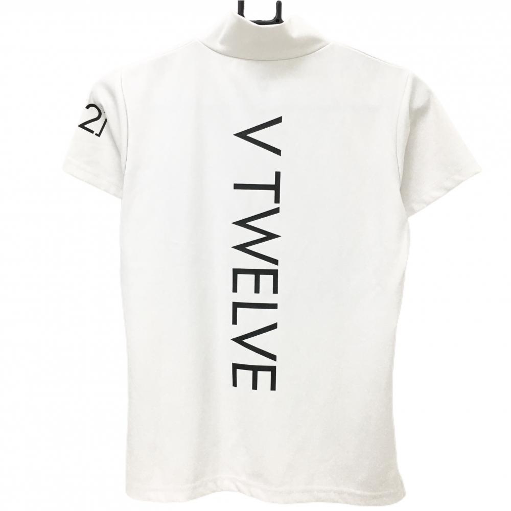 【美品】V12 半袖ハイネックシャツ 白×黒 ハーフジップロゴ シリコンワッペン レディース 0(S) ゴルフウェア V12