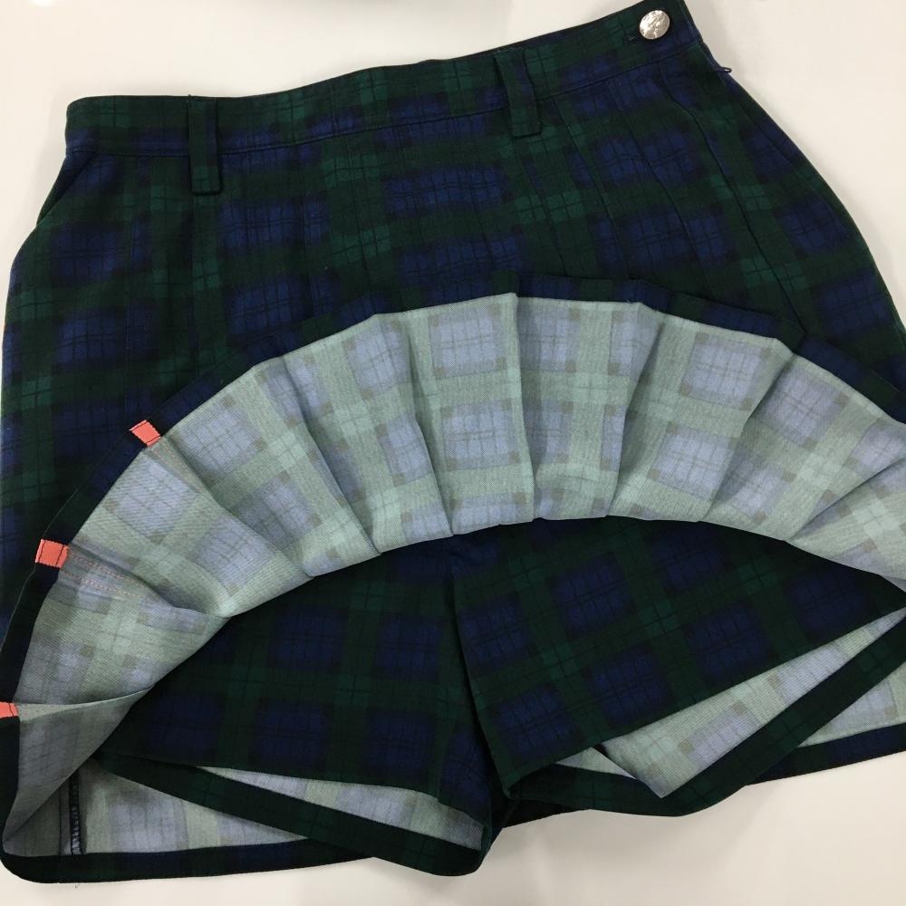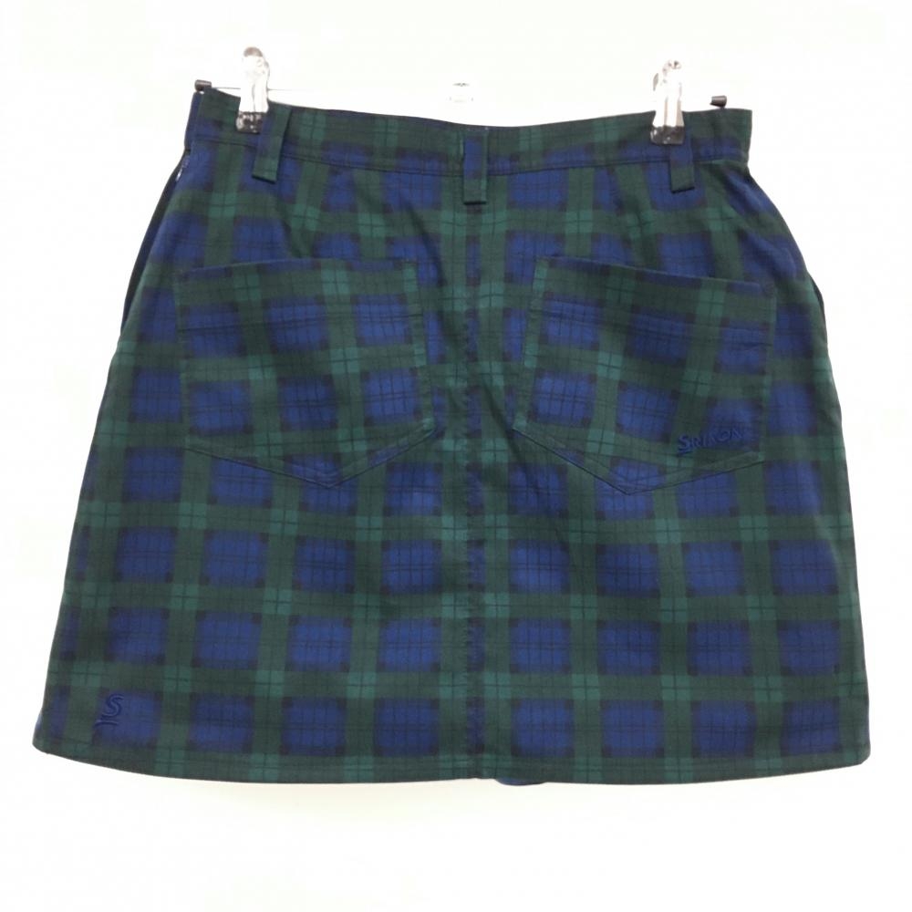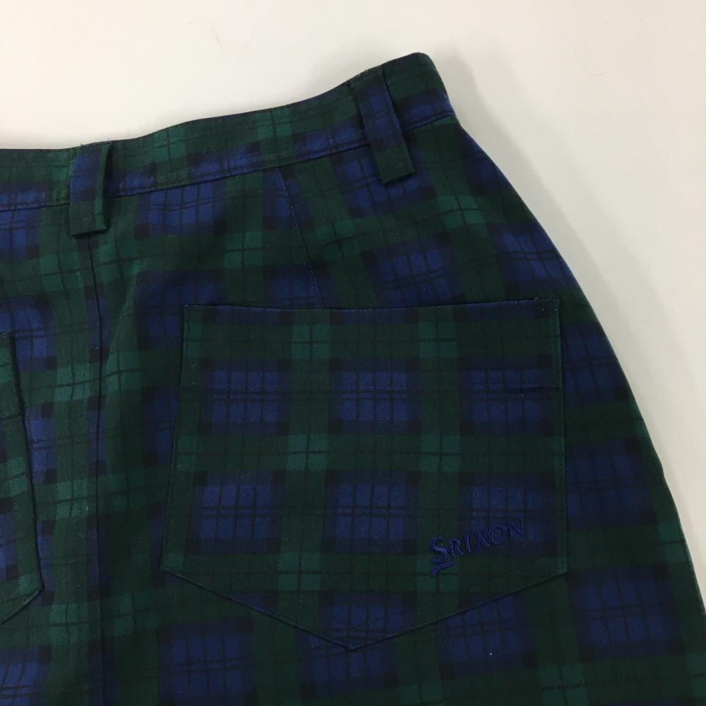 【超美品】スリクソン プリーツスカート グリーン×ネイビー チェック柄 バックロゴ インナーパンツ付 レディース L ゴルフウェア SRIXON