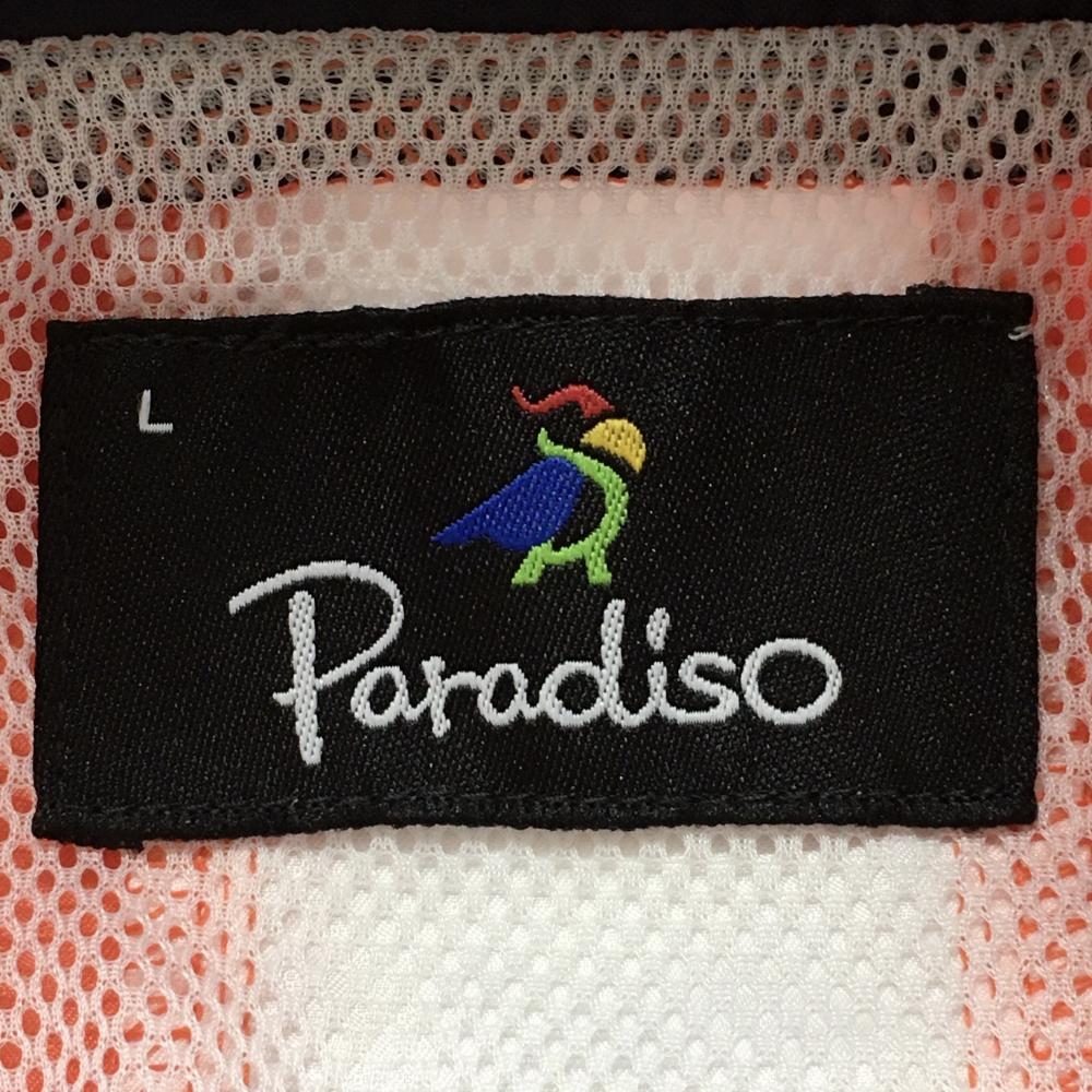 パラディーゾ 2WAYジャケットブルゾン オレンジ×白 胸元ライン ロゴ刺しゅう 袖着脱可 メッシュ裏地 メンズ L ゴルフウェア Paradiso