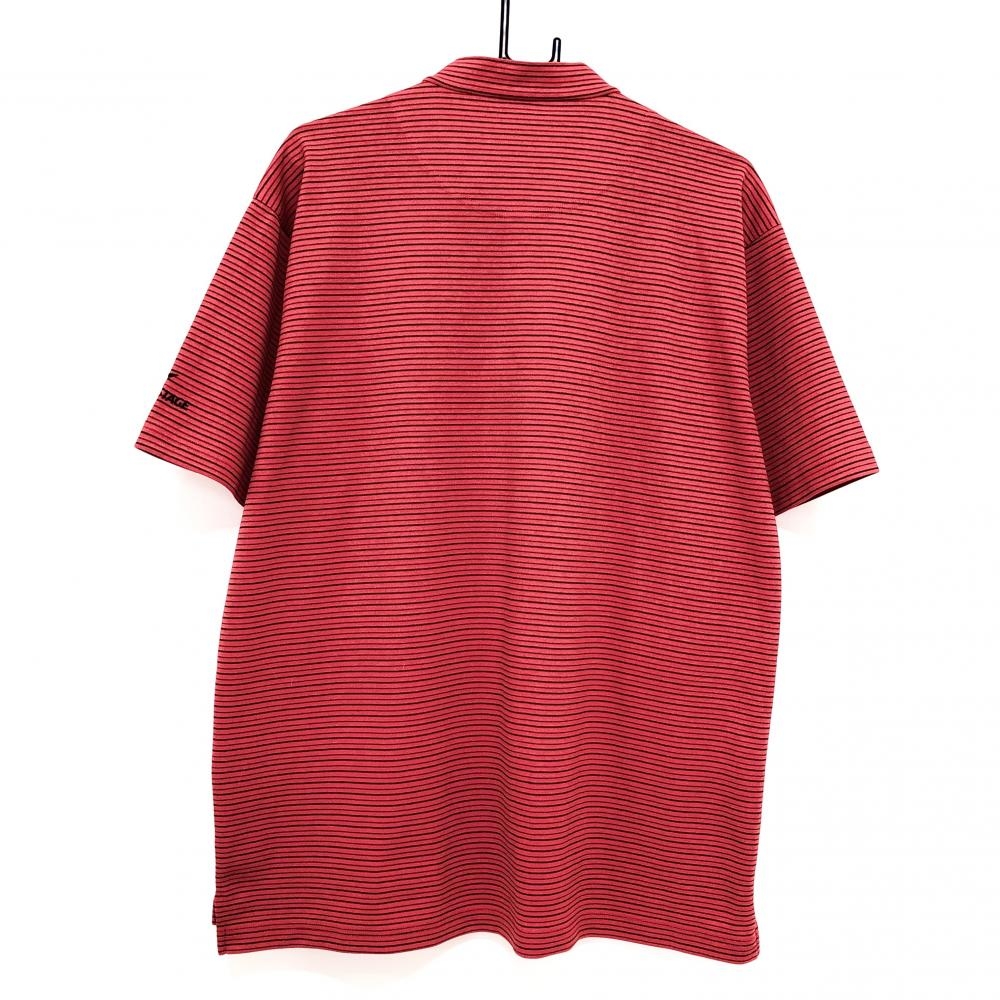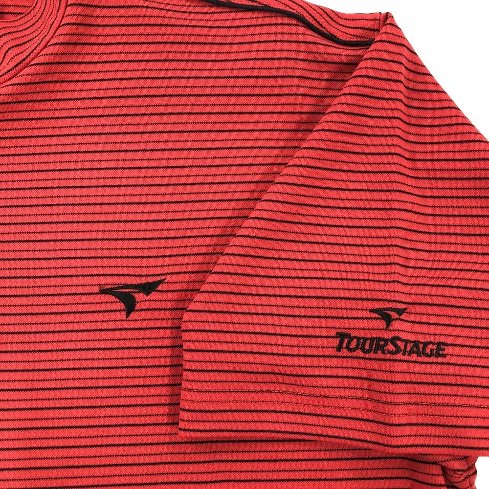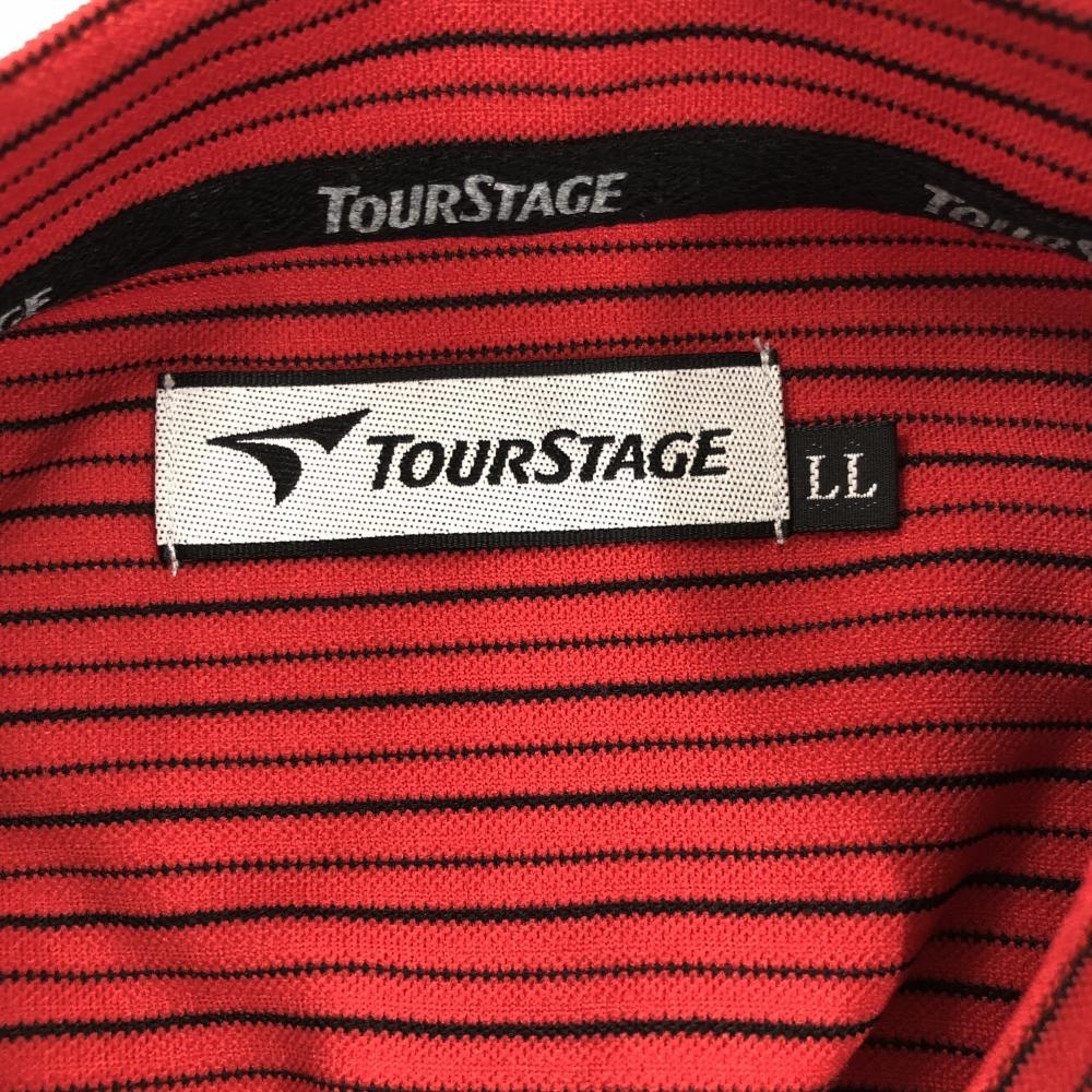 【超美品】ツアーステージ 半袖ハイネックシャツ レッド×黒 ボーダー ロゴ刺しゅう ハーフジップ メンズ LL ゴルフウェア TOURSTAGE