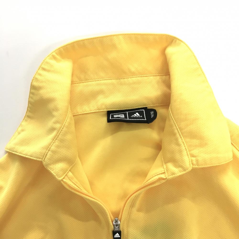 アディダス 半袖ポロシャツ イエロー 袖3ライン ハーフジップ メンズ M/M ゴルフウェア adidas