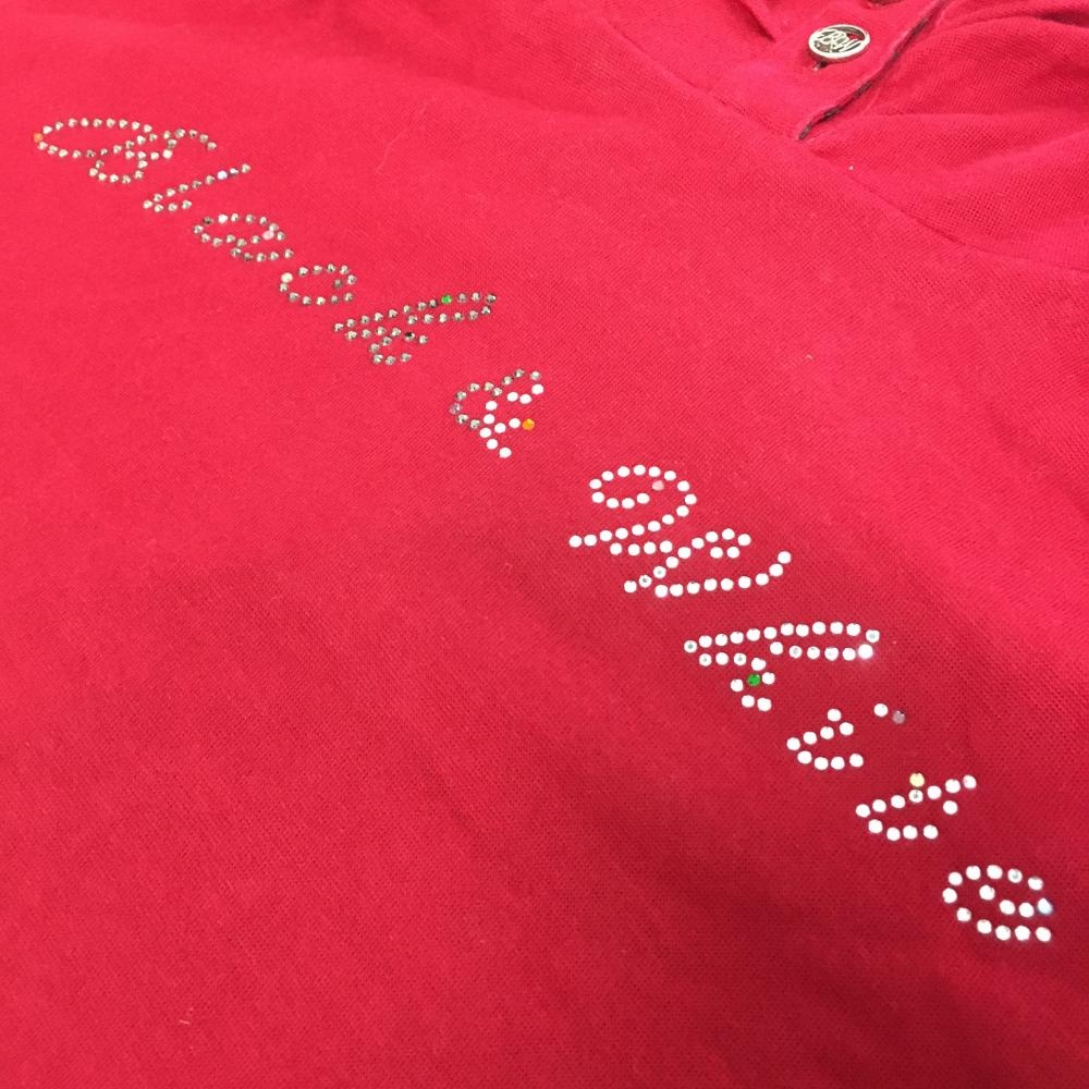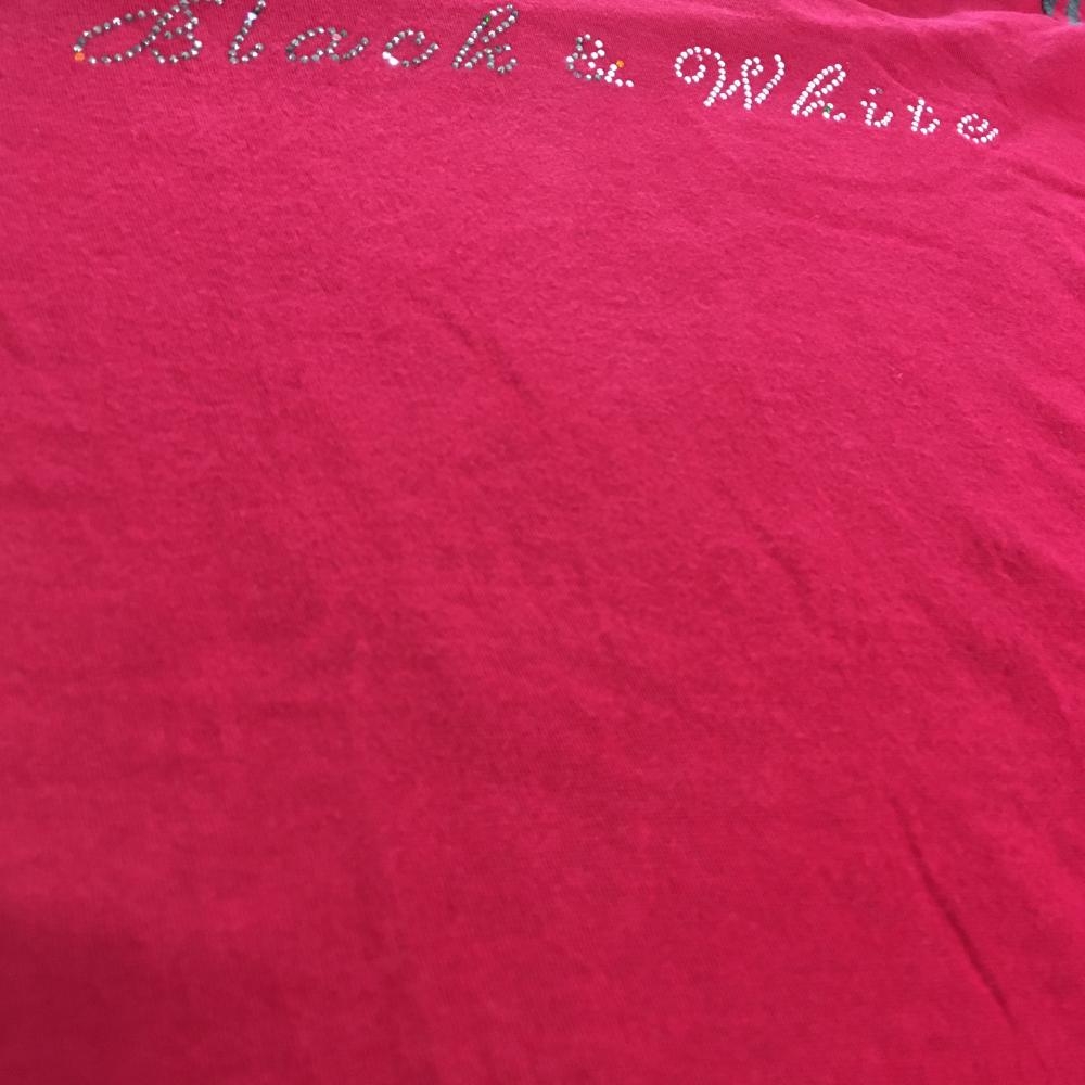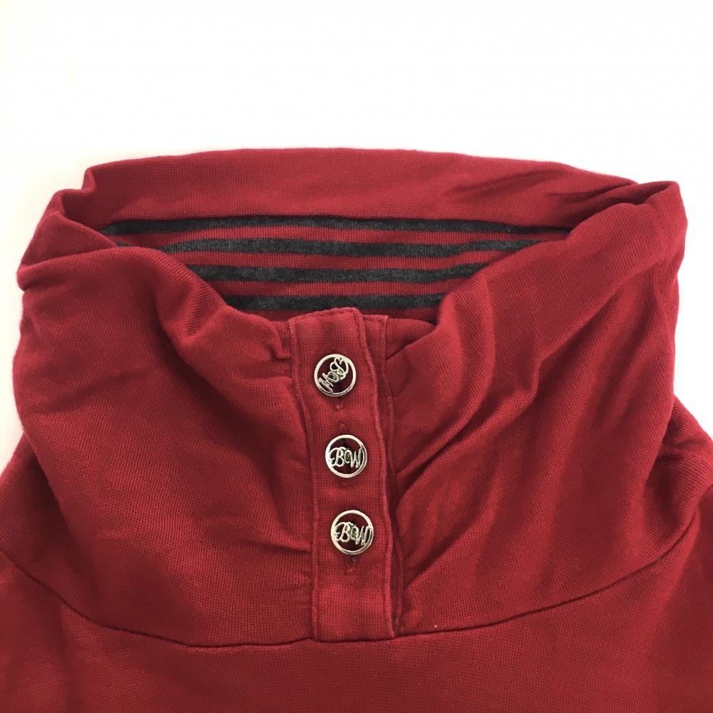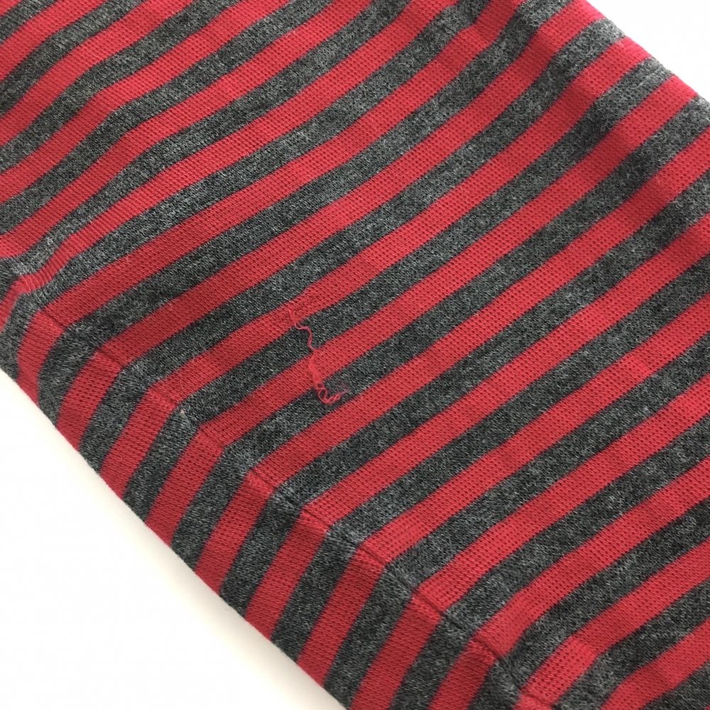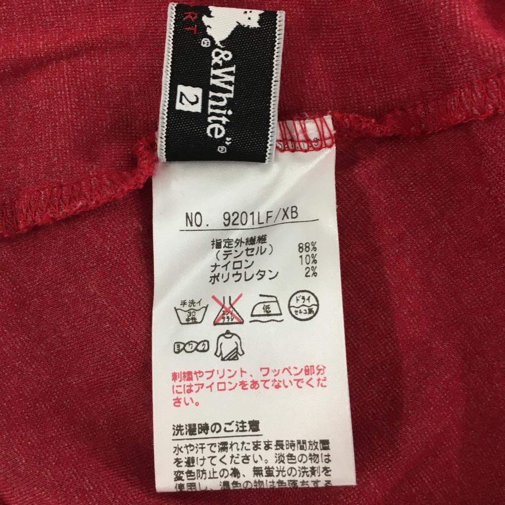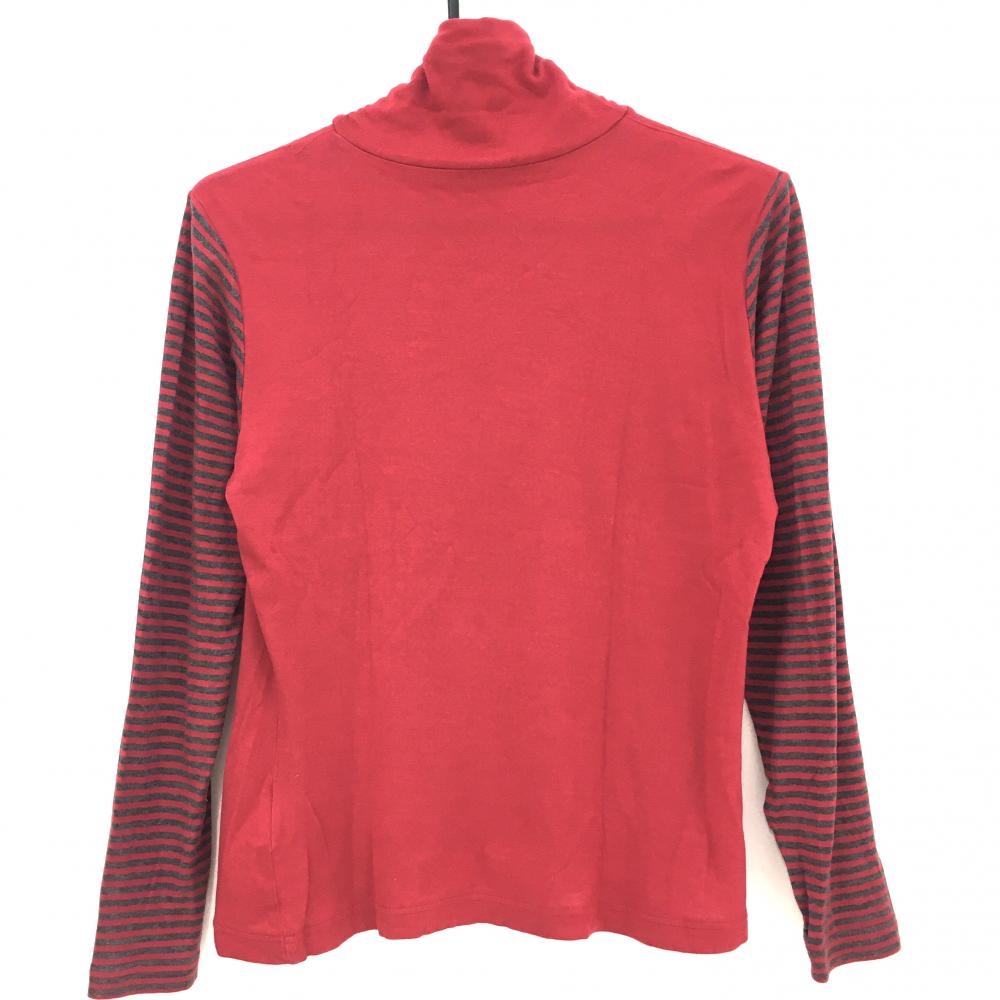 【美品】ブラックアンドホワイト 長袖ハイネックシャツ レッド×グレー 袖ボーダー レディース 2(M) ゴルフウェア Black&White