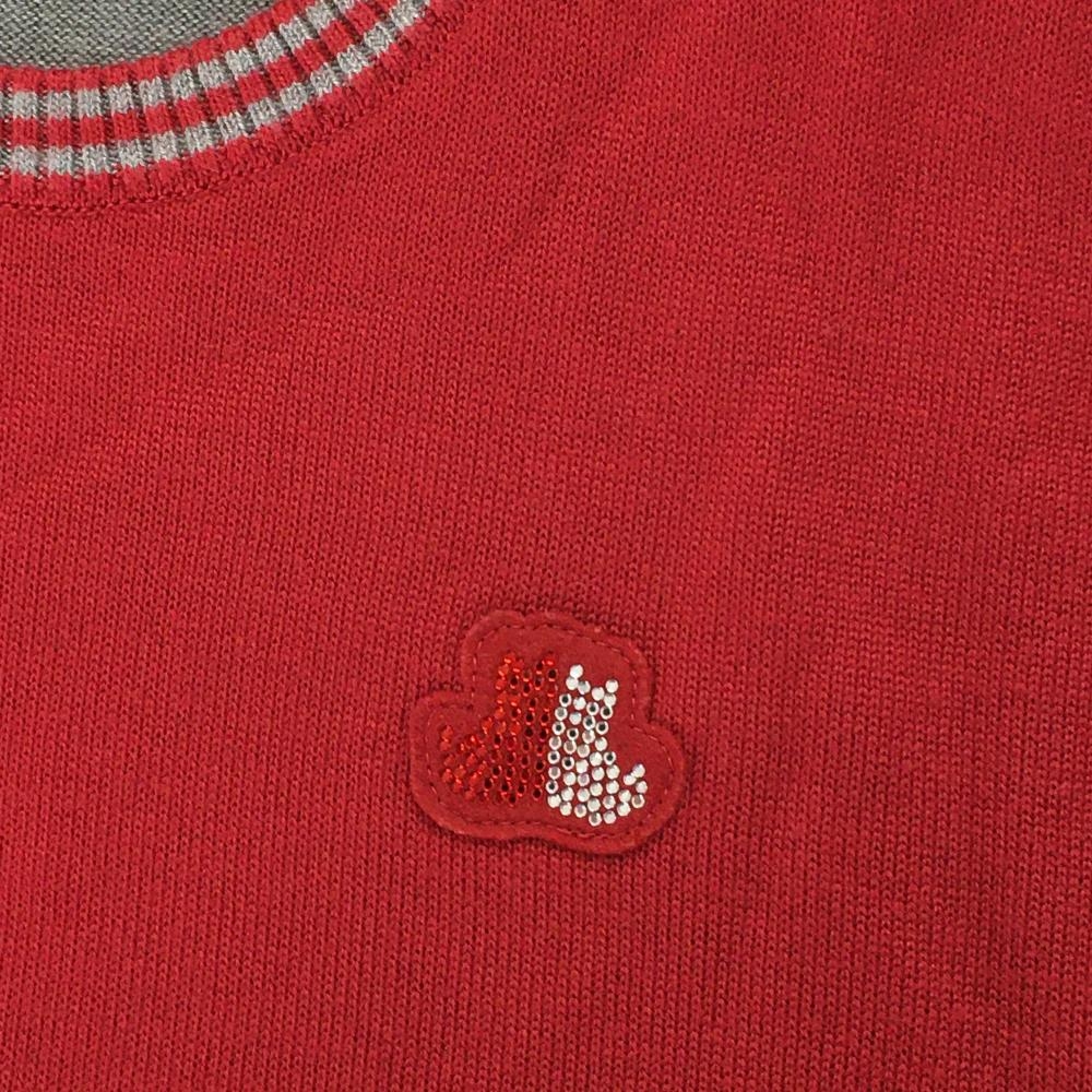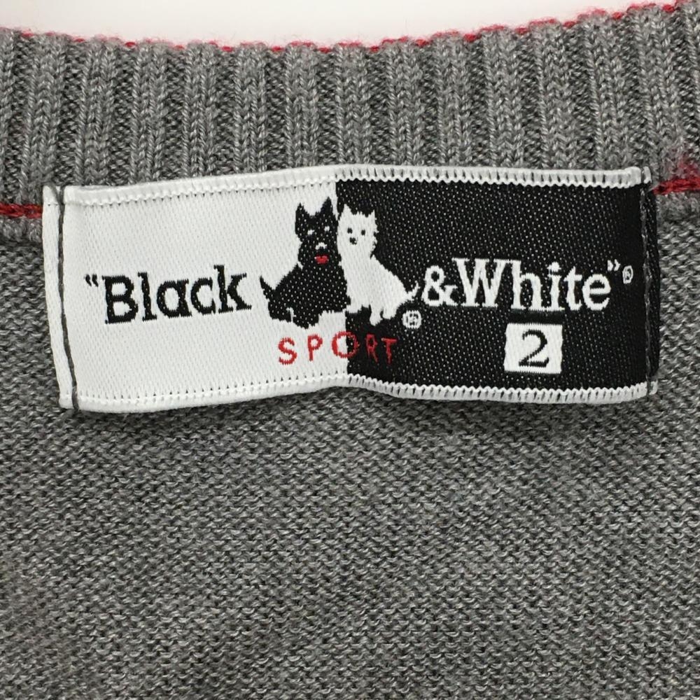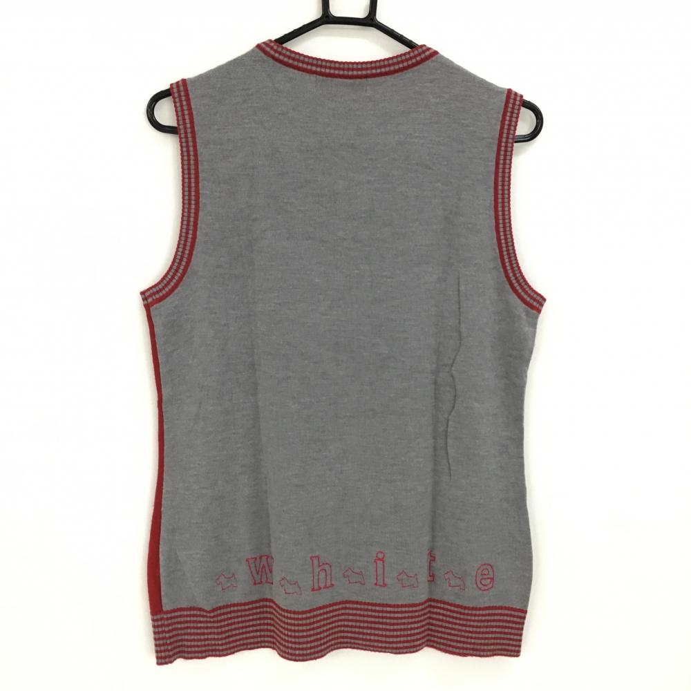 ブラックアンドホワイト ニットベスト レッド×グレー ラインストーンロゴ ウール混 レディース 2(M) ゴルフウェア Black&White