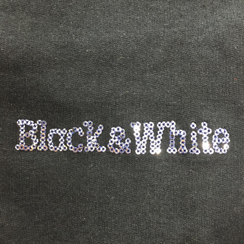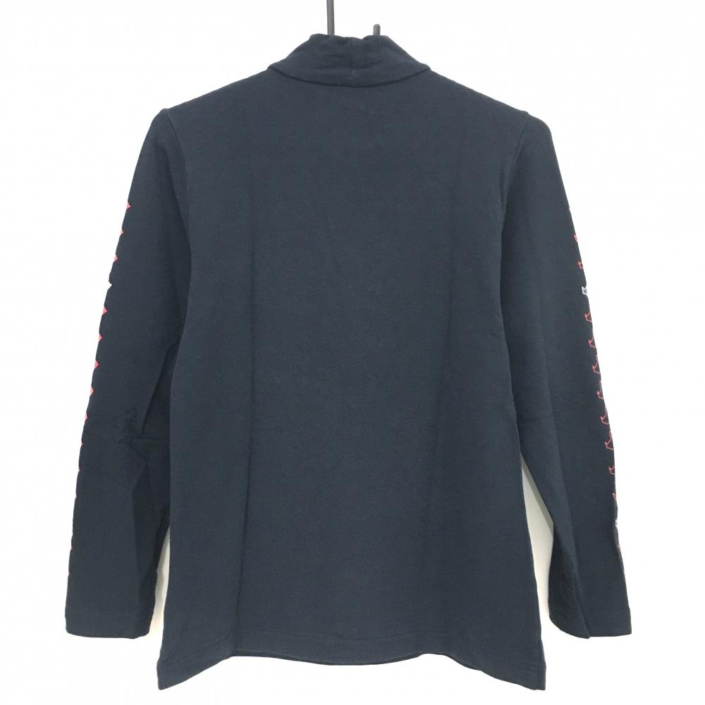 【美品】ブラックアンドホワイト 長袖ハイネックシャツ ネイビー スパンコールロゴ レディース L ゴルフウェア Black&White