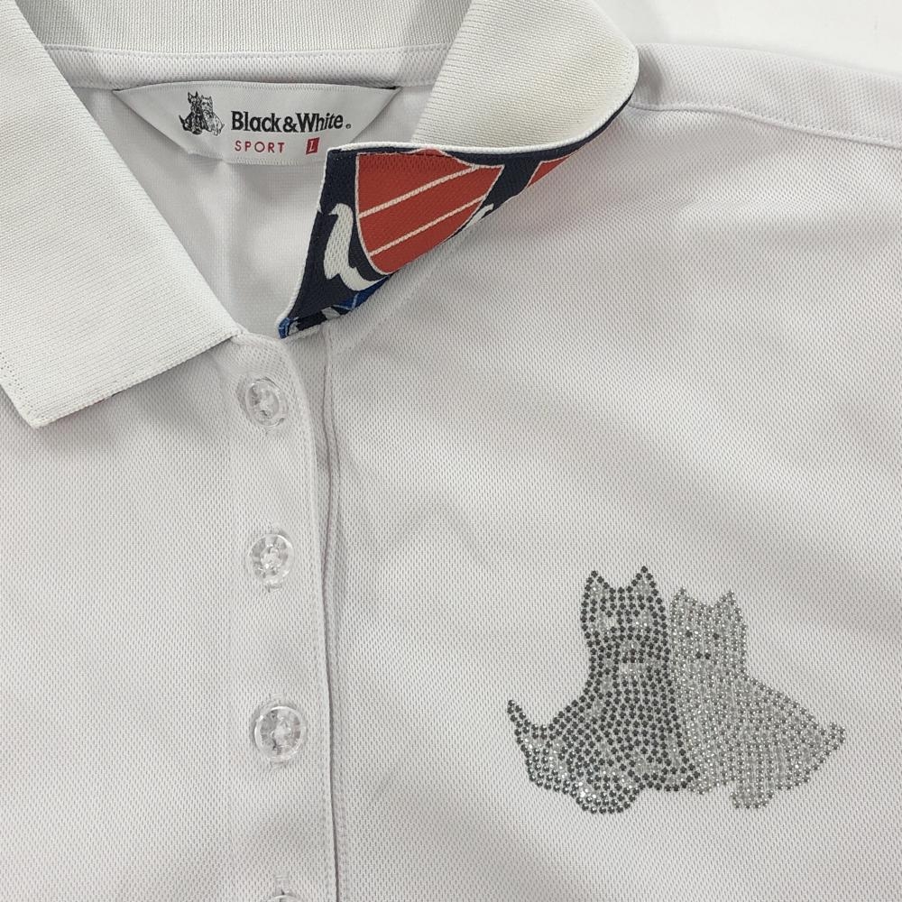 ブラックアンドホワイト 半袖ポロシャツ 白 胸元ロゴ レディース L ゴルフウェア Black&White