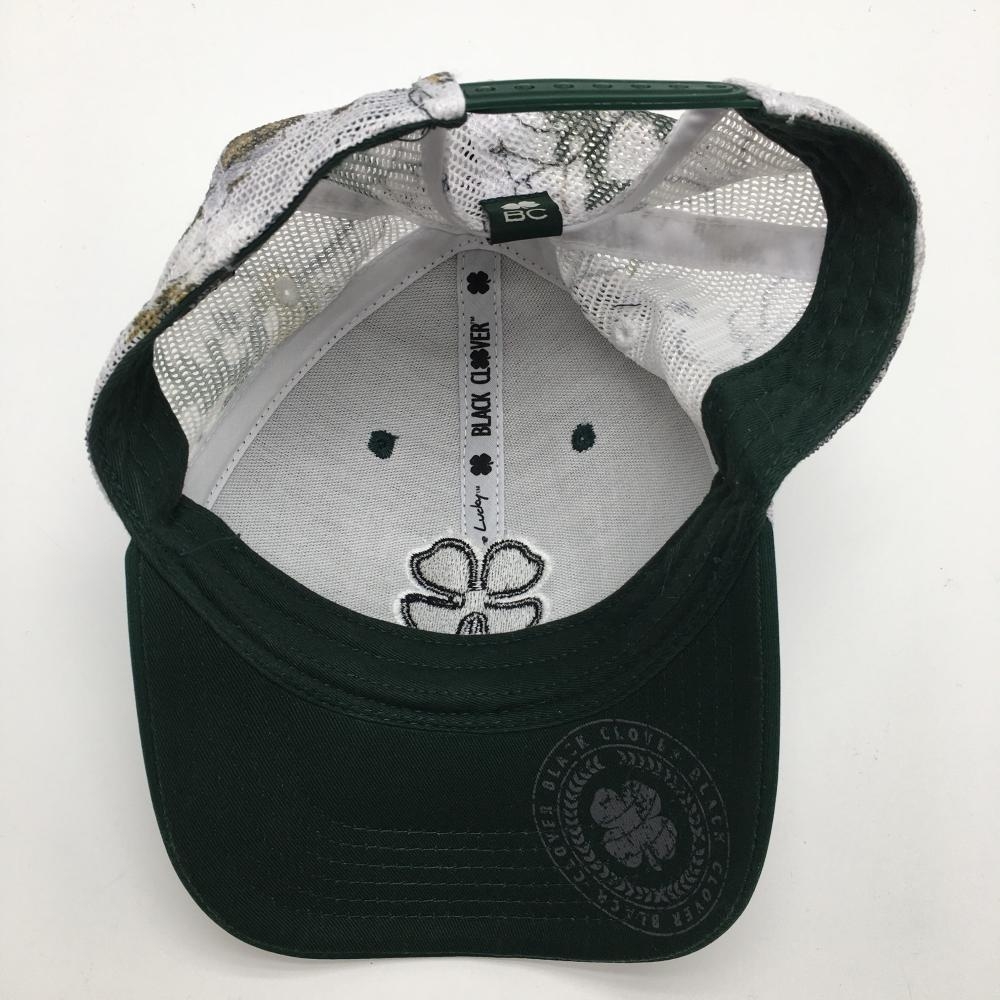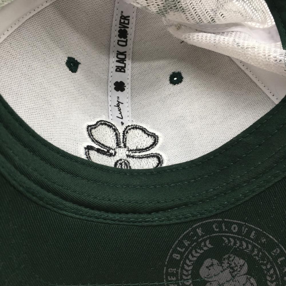 【美品】ブラッククローバー メッシュキャップ グリーン×白 一部柄 立体ロゴ刺しゅう ゴルフウェア BLACK CLOVER