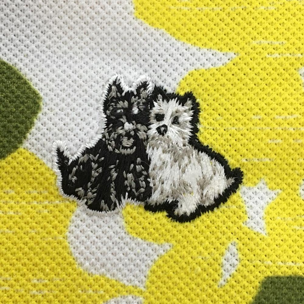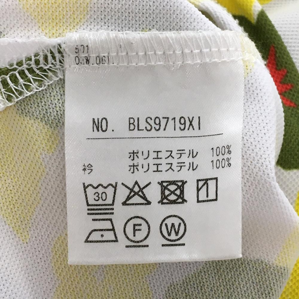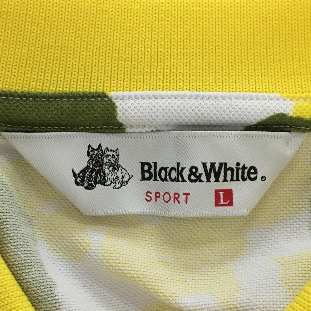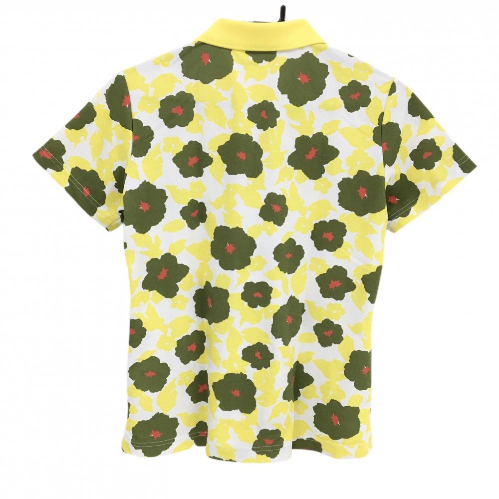 【超美品】ブラックアンドホワイト 半袖ポロシャツ 白×イエロー 花柄 胸元ロゴ レディース L ゴルフウェア Black&White
