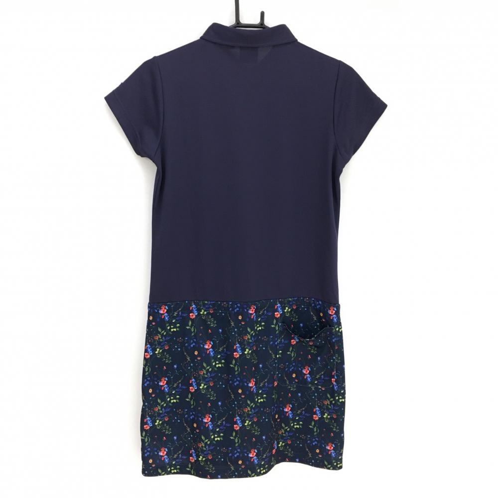 【超美品】フィドラ 半袖ポロワンピース ネイビー×マルチカラー スカート部花柄 レディース M ゴルフウェア FIDRA
