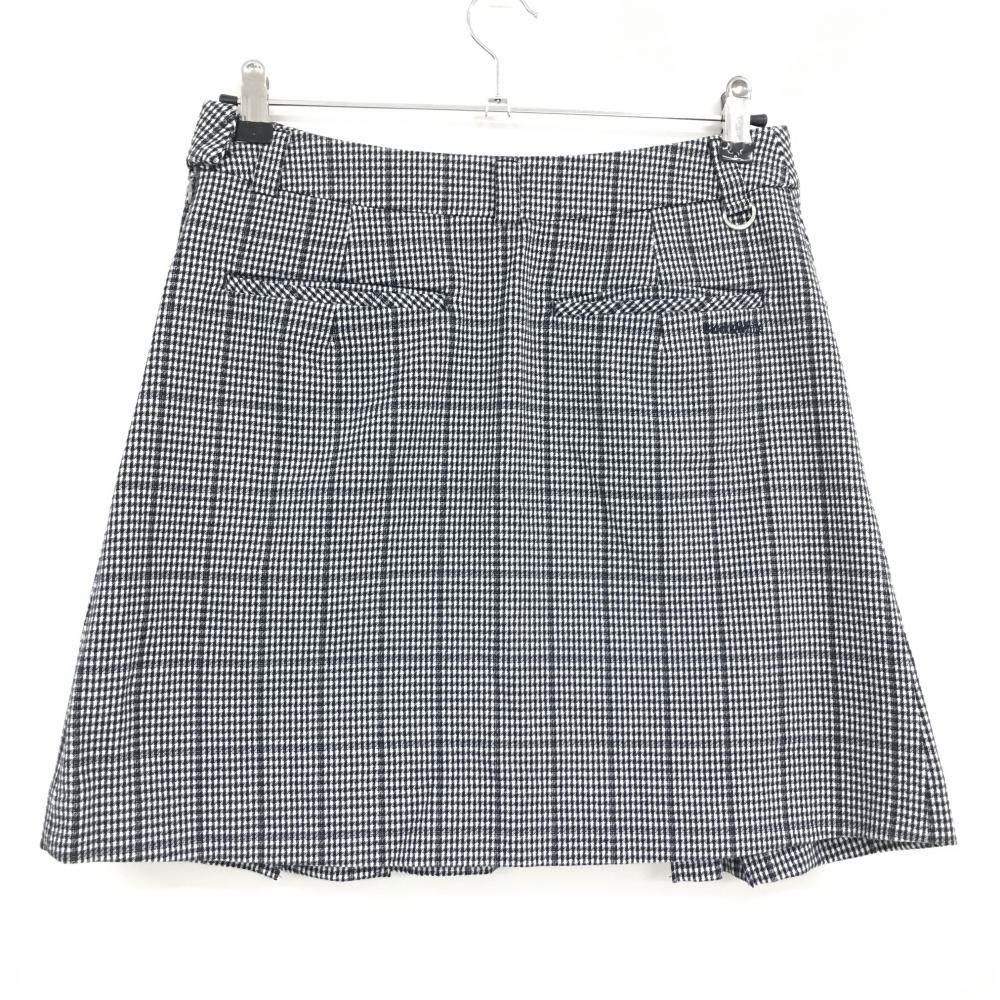 【超美品】ブラックアンドホワイト スカート 白×黒 チェック柄 一部プリーツ ロゴ刺しゅう レディース L ゴルフウェア Black&White