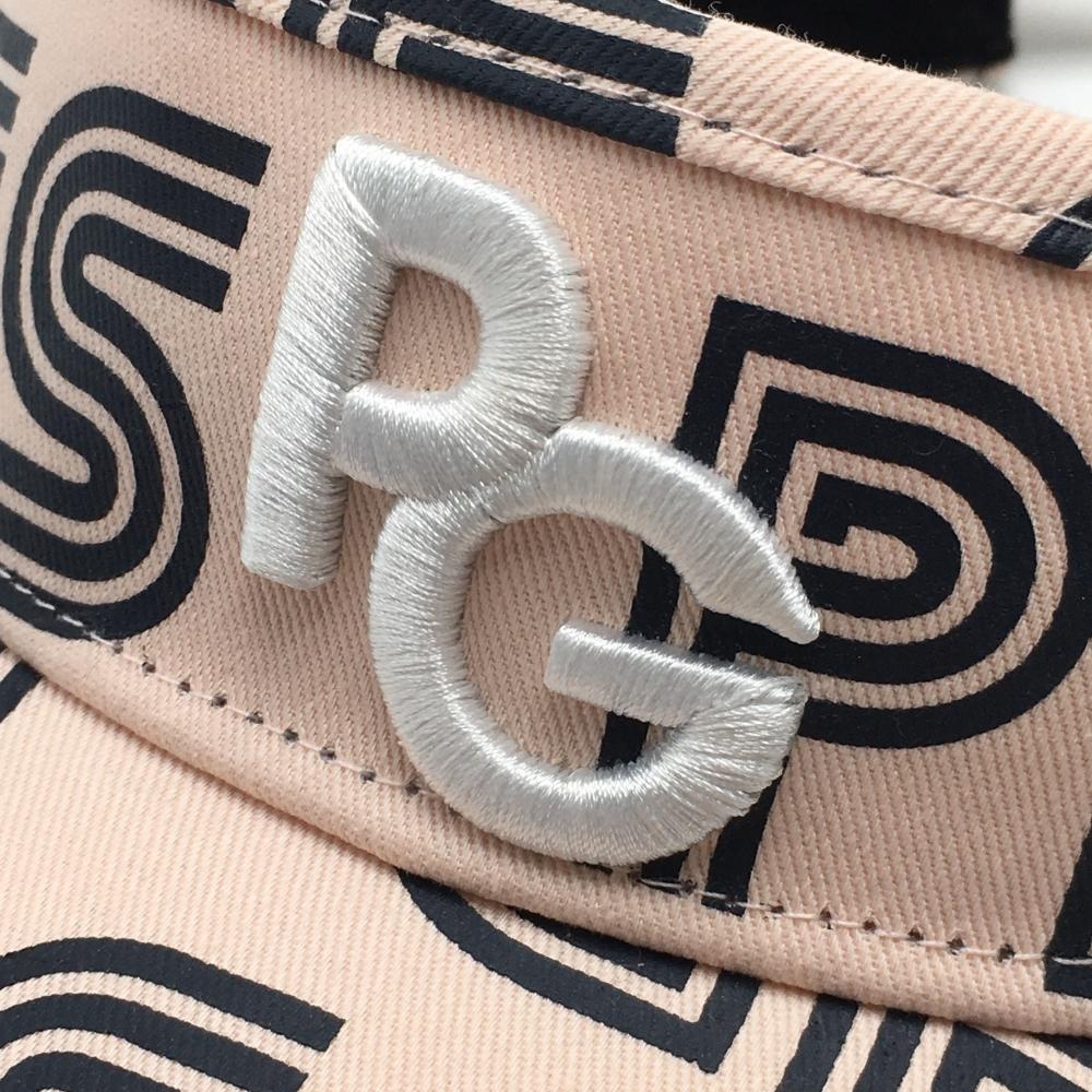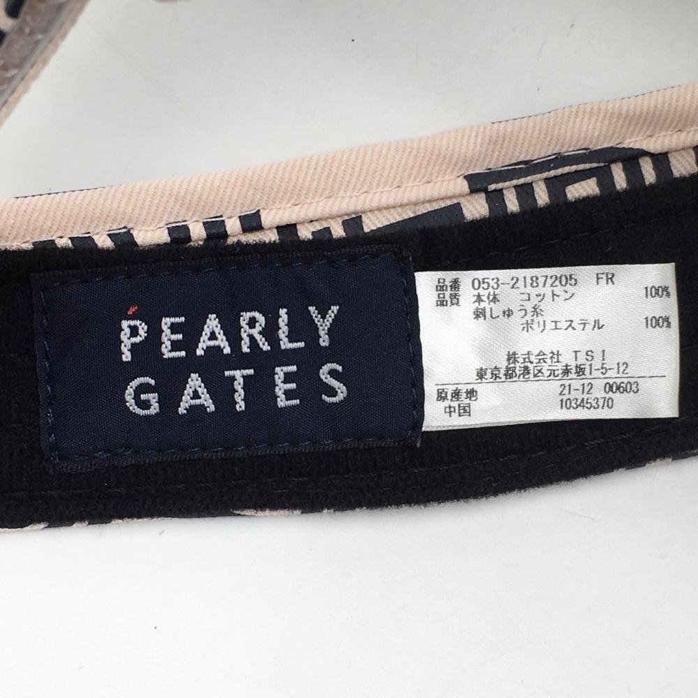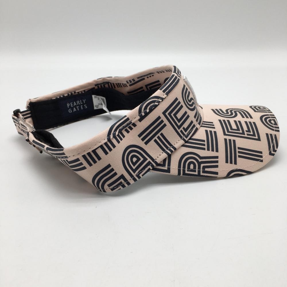 【超美品】パーリーゲイツ サンバイザー ピンク×黒 ロゴ総柄 FR ゴルフウェア PEARLY GATES