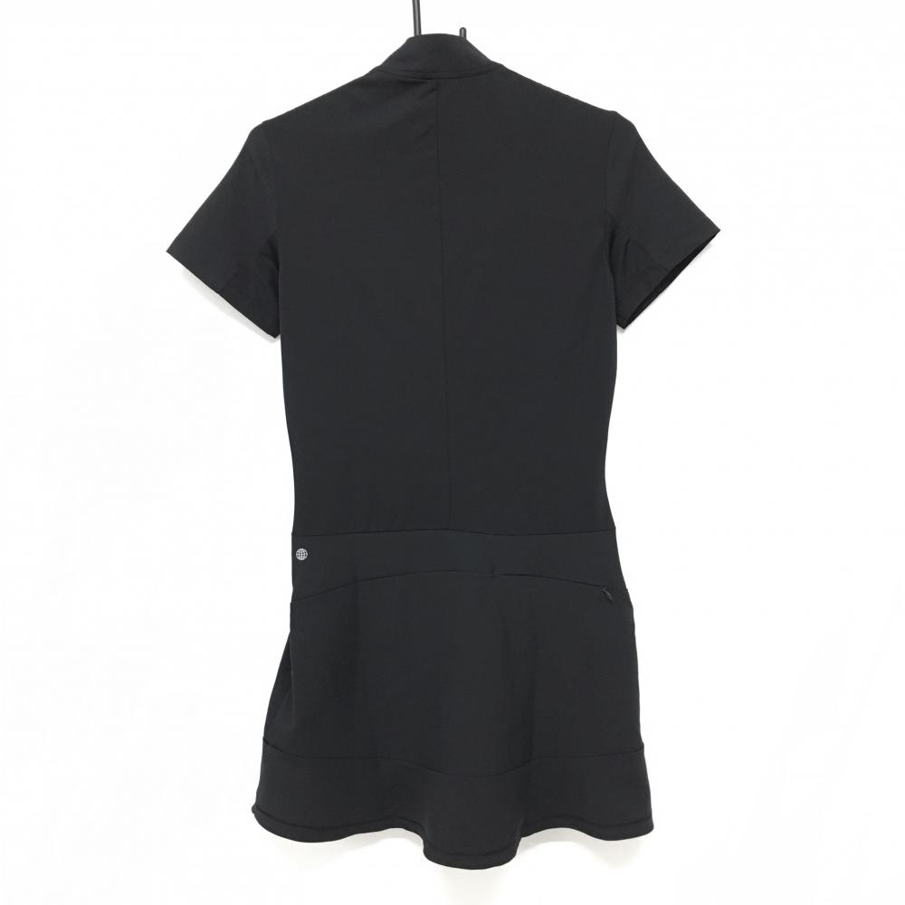 【超美品】アディダス 半袖ハイネックワンピース 黒 ネックロロゴ ハーフジップ インナーパンツなし レディース M ゴルフウェア adidas