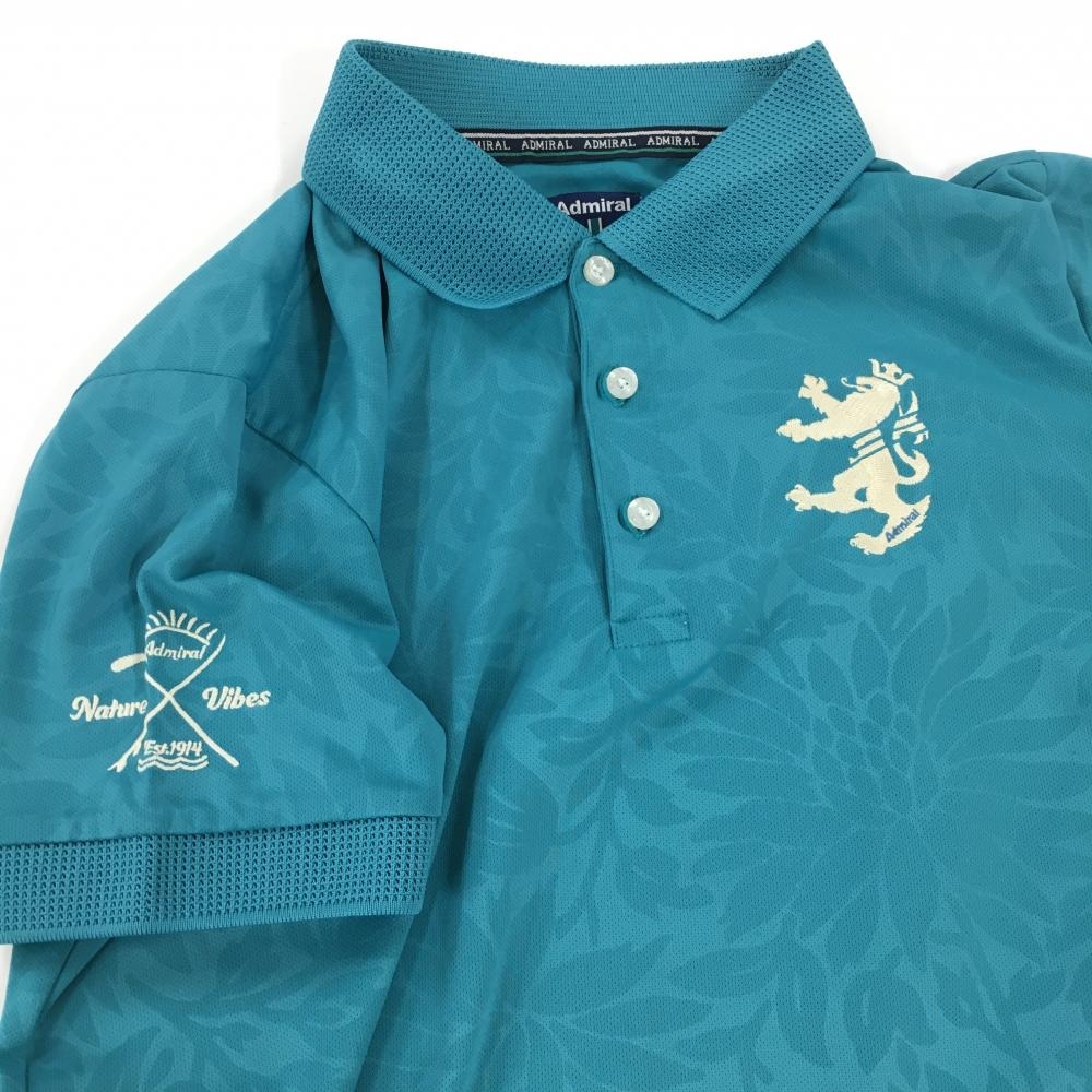 アドミラル 半袖ポロシャツ ブルーグリーン 花柄地模様 ロゴ刺しゅう メンズ L ゴルフウェア Admiral