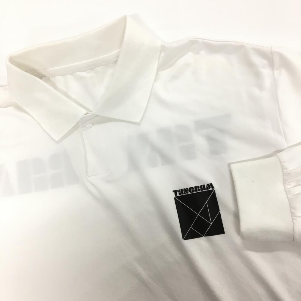 【美品】タングラム 長袖ポロシャツ 白 背面ロゴ スナップボタン メンズ S ゴルフウェア TANGRAM