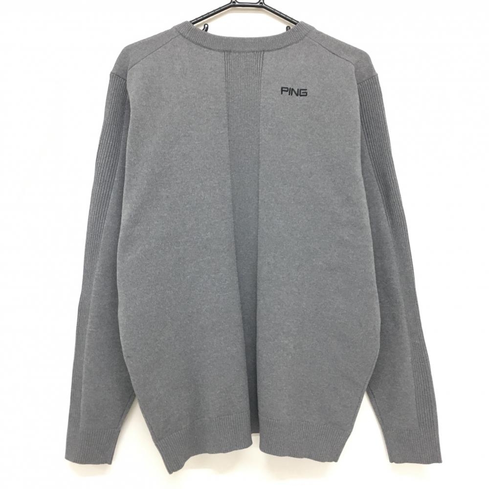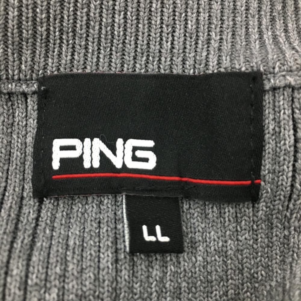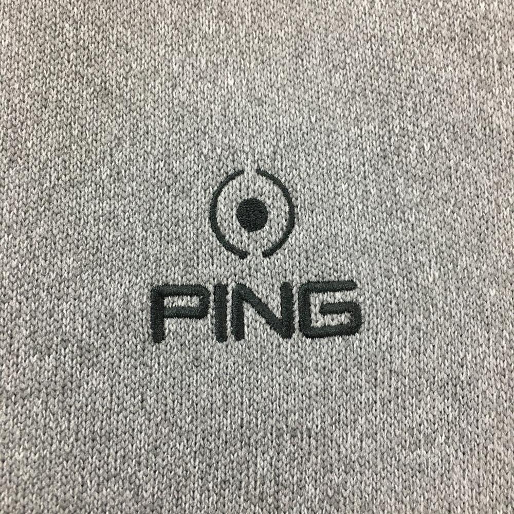 【超美品】ピン セーター グレー ロゴ刺しゅう 袖リブ織 ニット メンズ LL ゴルフウェア PING