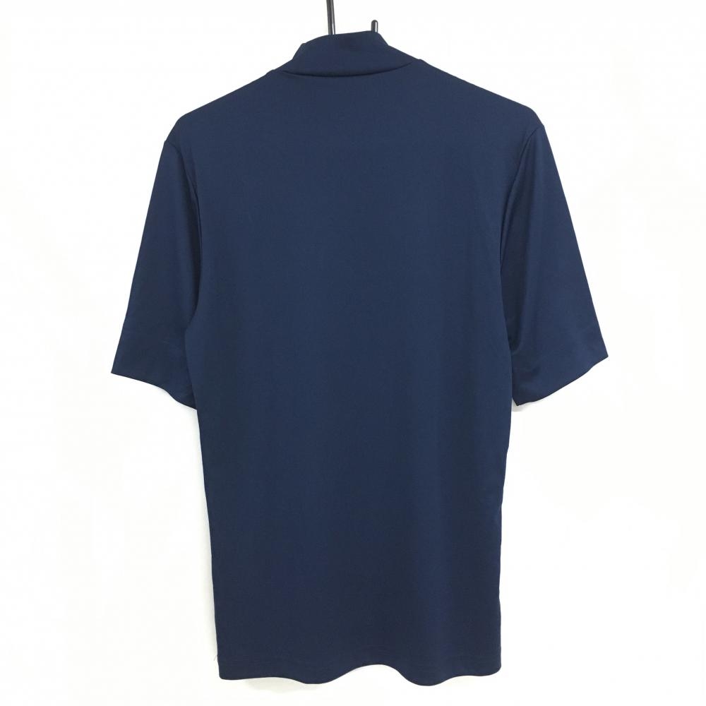 アディダス 半袖ハイネックシャツ ネイビー 袖3ライン 胸元ロゴ メンズ M ゴルフウェア adidas