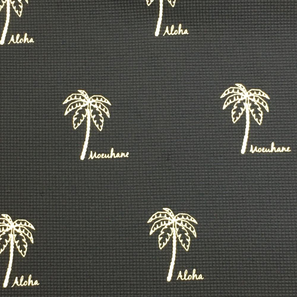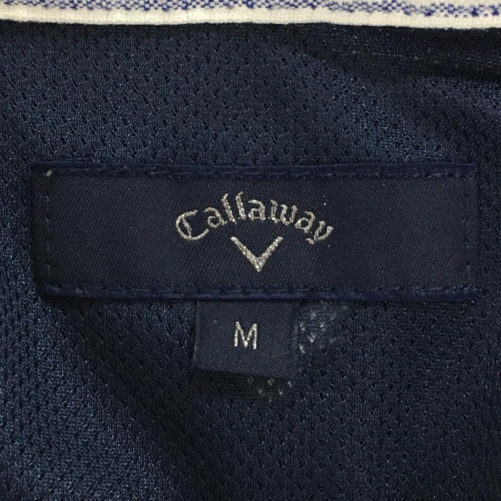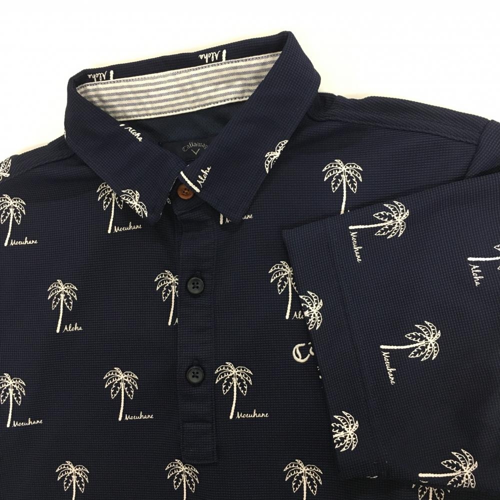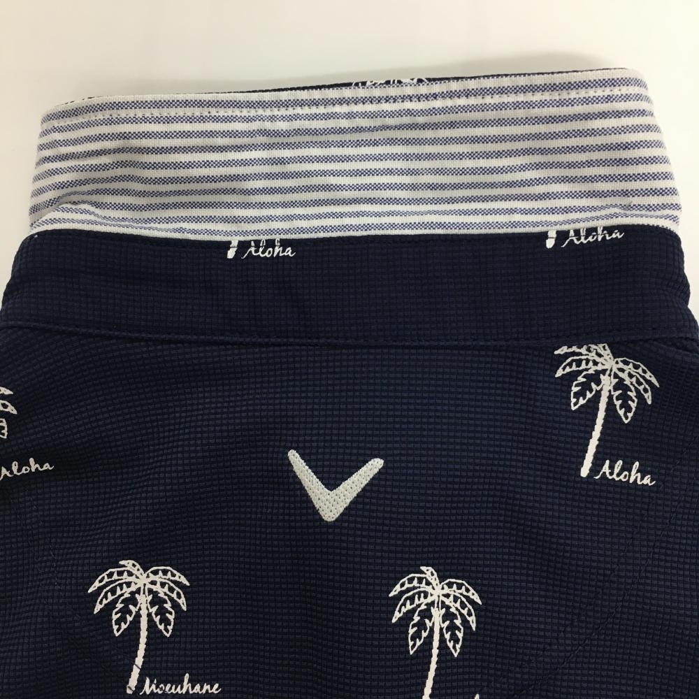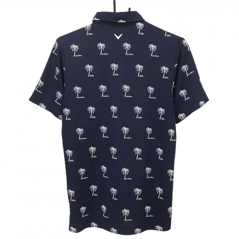 【美品】キャロウェイ 半袖ポロシャツ ネイビー×白 ヤシの木総柄 襟裏ボーダー メンズ M ゴルフウェア Callaway