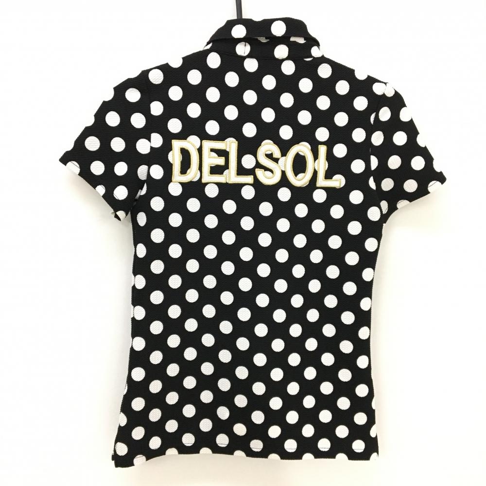 デルソル 半袖ポロシャツ 黒×白 ドット ゴールド刺しゅう レディース ゴルフウェア DELSOL