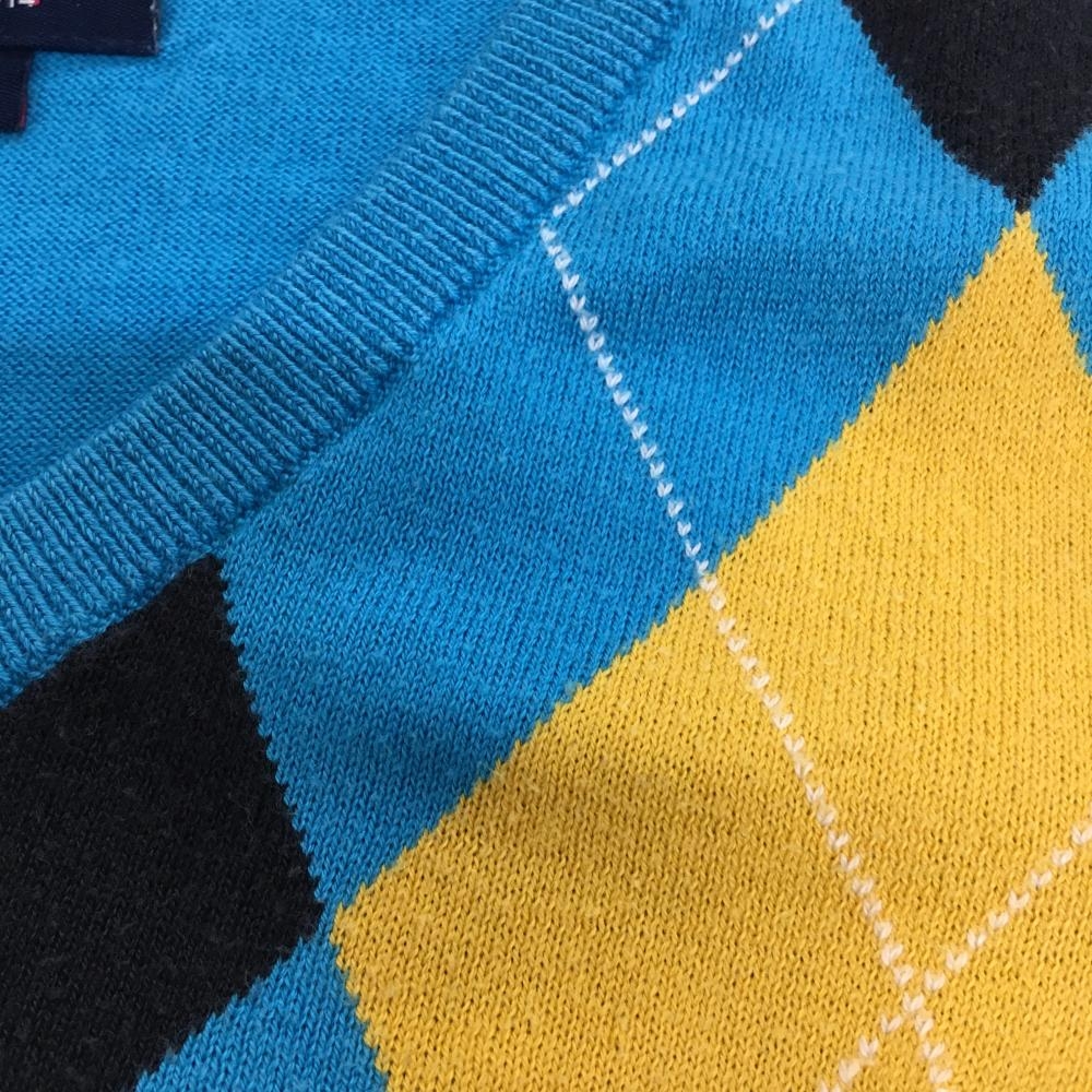 【超美品】アドミラル ニットベスト ライトブルー×イエロー アーガイル柄 ロゴ刺しゅう レディース M ゴルフウェア Admiral