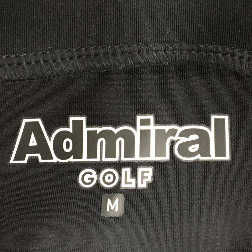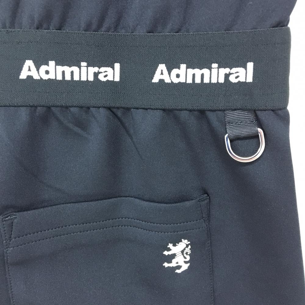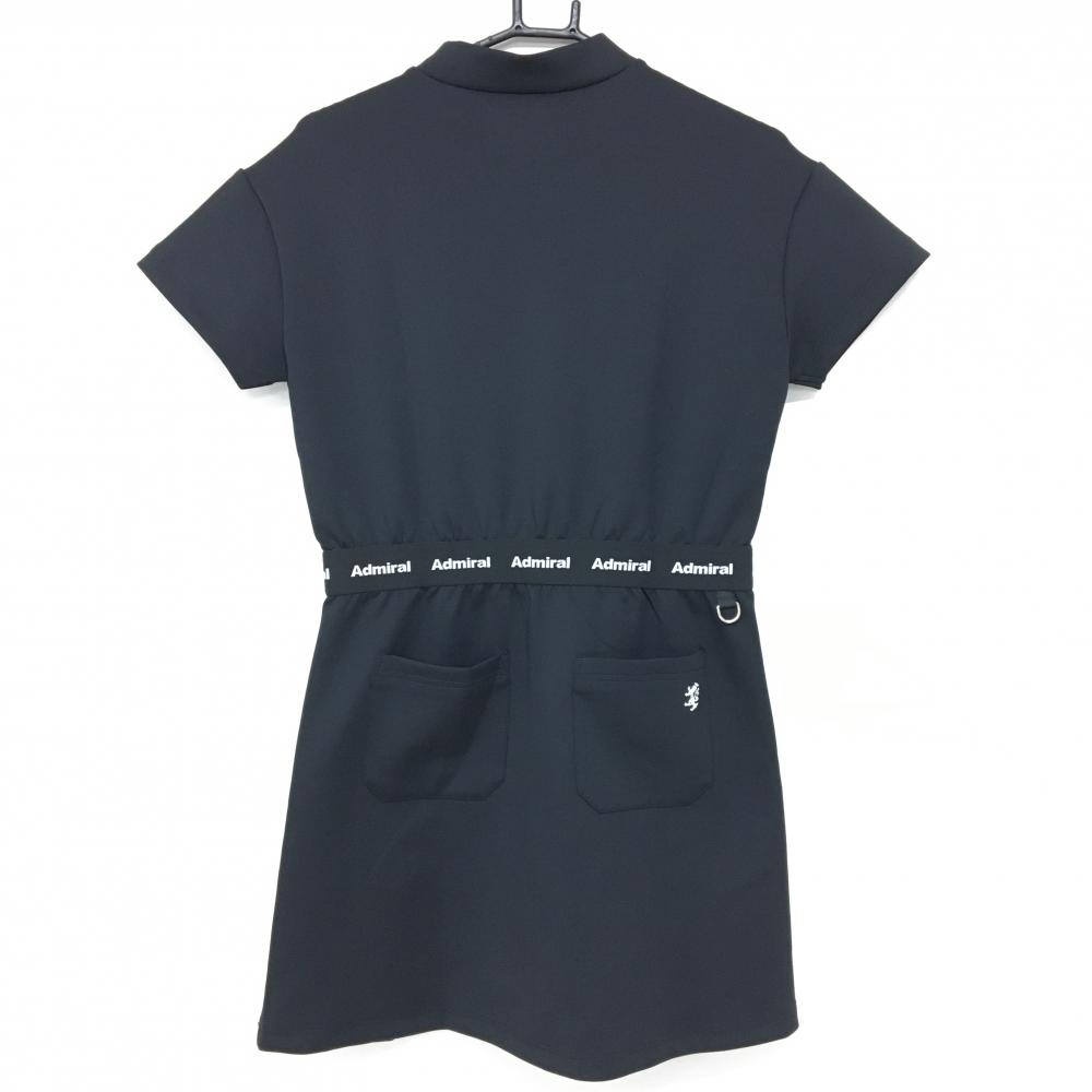 【超美品】アドミラル 半袖ハイネックワンピース 黒×白 縦ライン ウエストゴム英字ロゴ レディース M ゴルフウェア Admiral