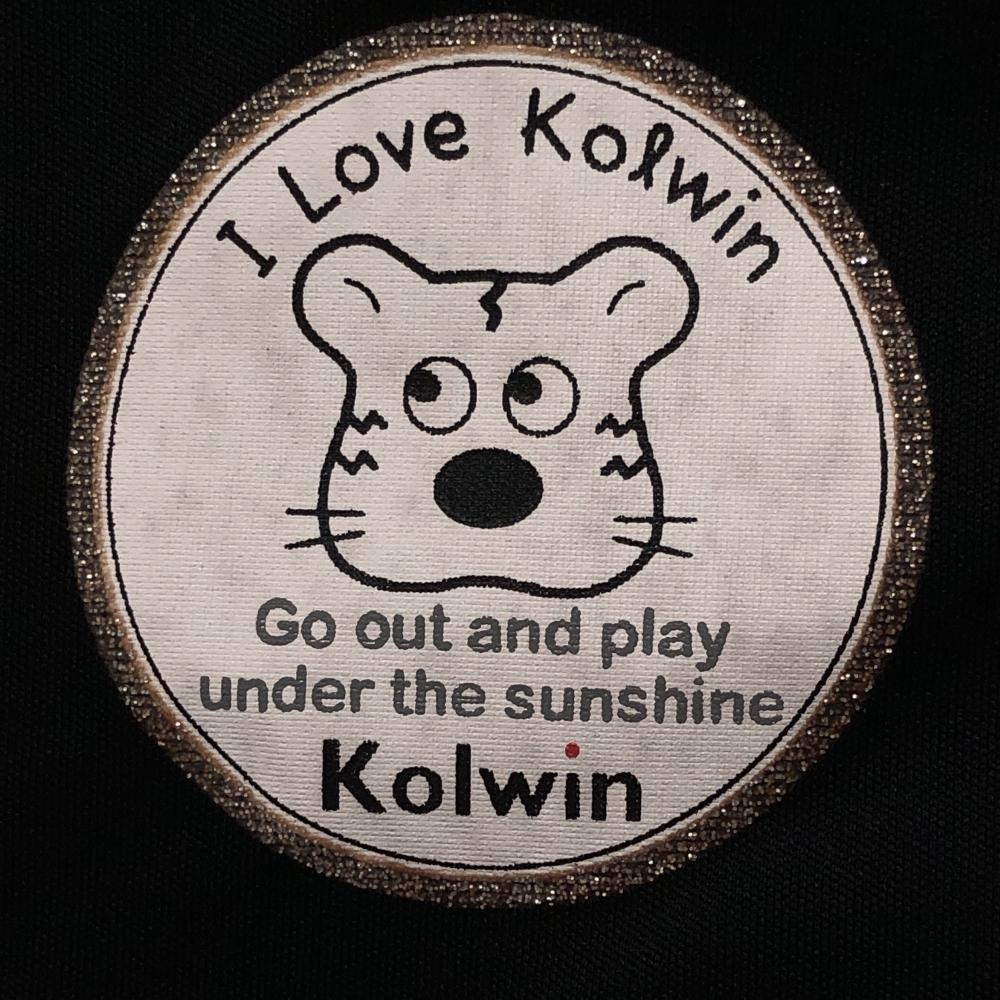 【美品】コルウィン 半袖ハイネックシャツ 黒 フロントプリント ハーフジップ レディース L ゴルフウェア Kolwin