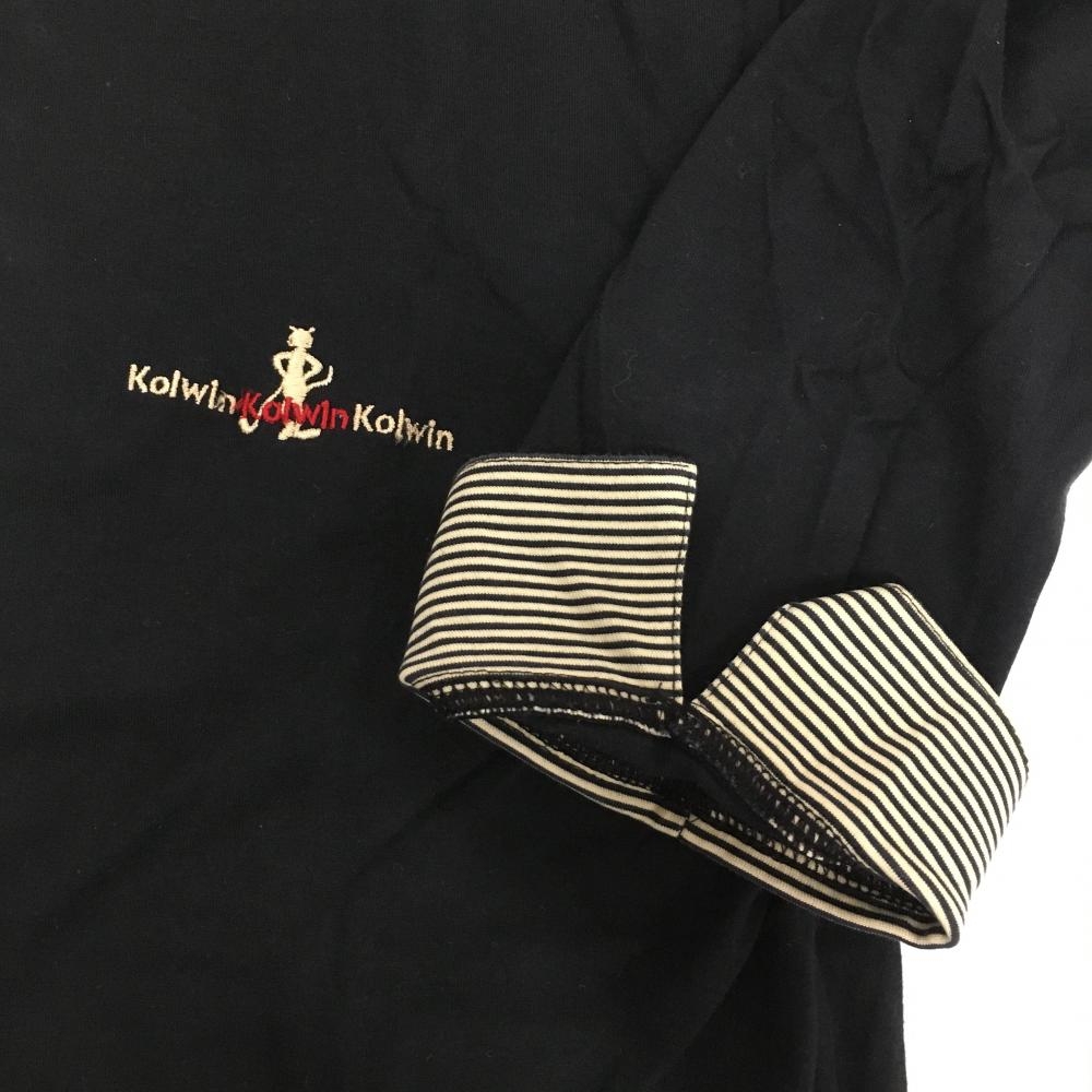【美品】コルウィン 七分袖ハイネックシャツ 黒×ライトベージュ 一部ボーダー ハーフジップ レディース L ゴルフウェア Kolwin