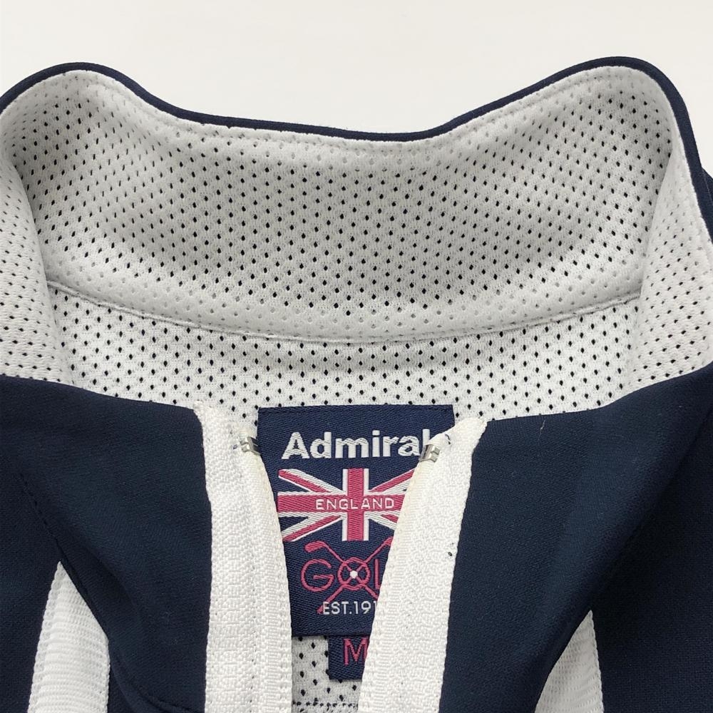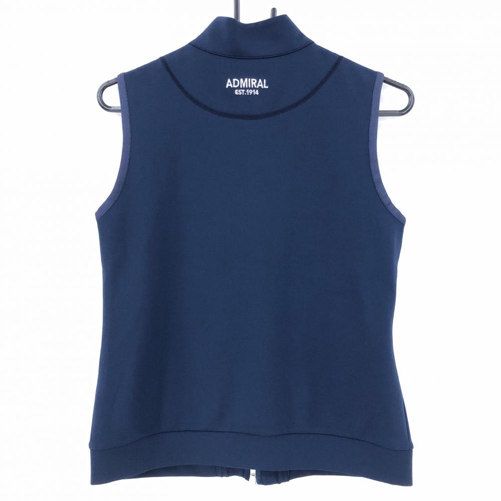 【美品】アドミラル ジップベスト ネイビー×白 縦ライン ジップロゴプリント レディース M ゴルフウェア Admiral