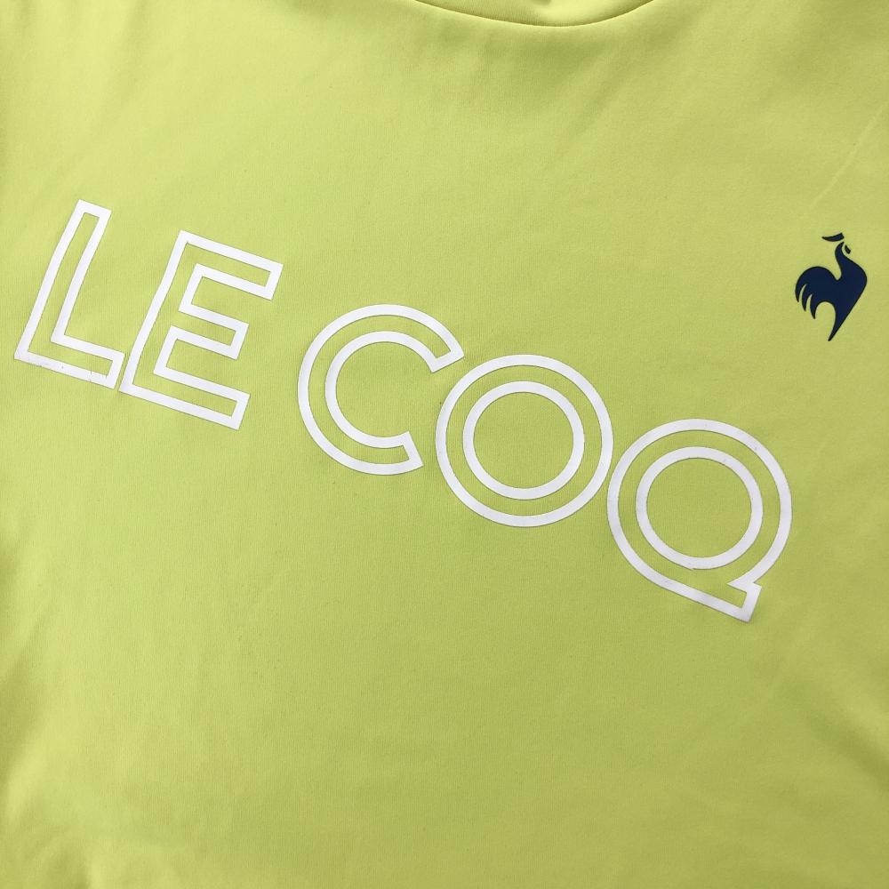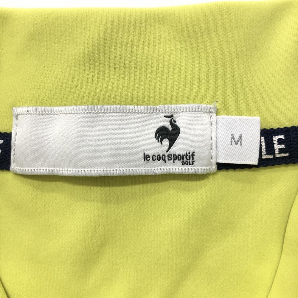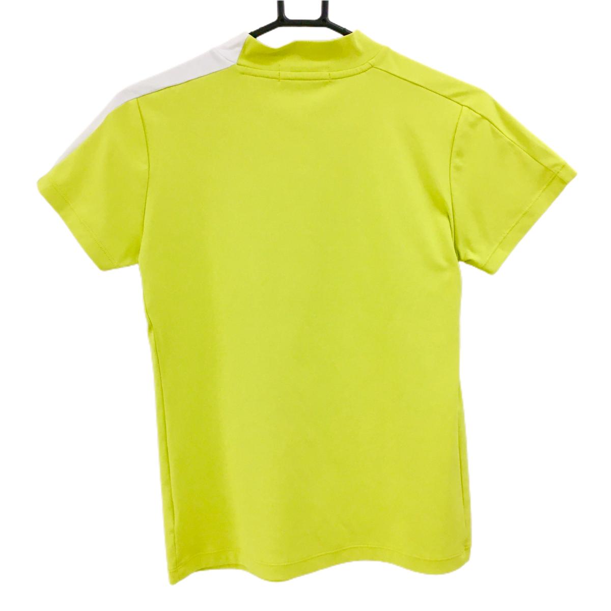 【美品】ルコックゴルフ 半袖ハイネックシャツ イエローグリーン×白×ネイビー レディース M ゴルフウェア le coq sportif