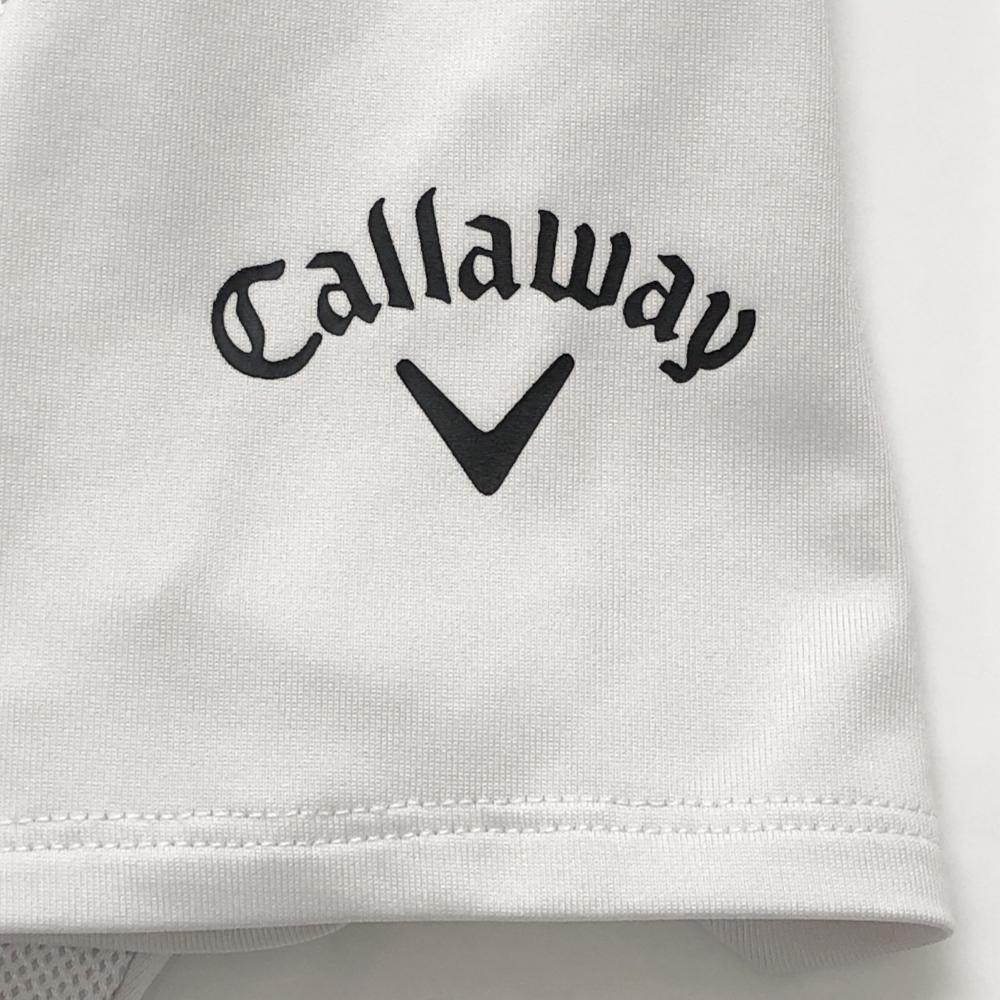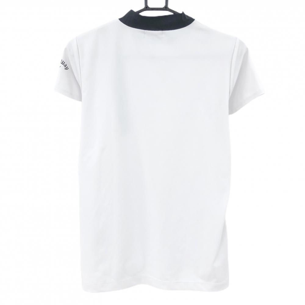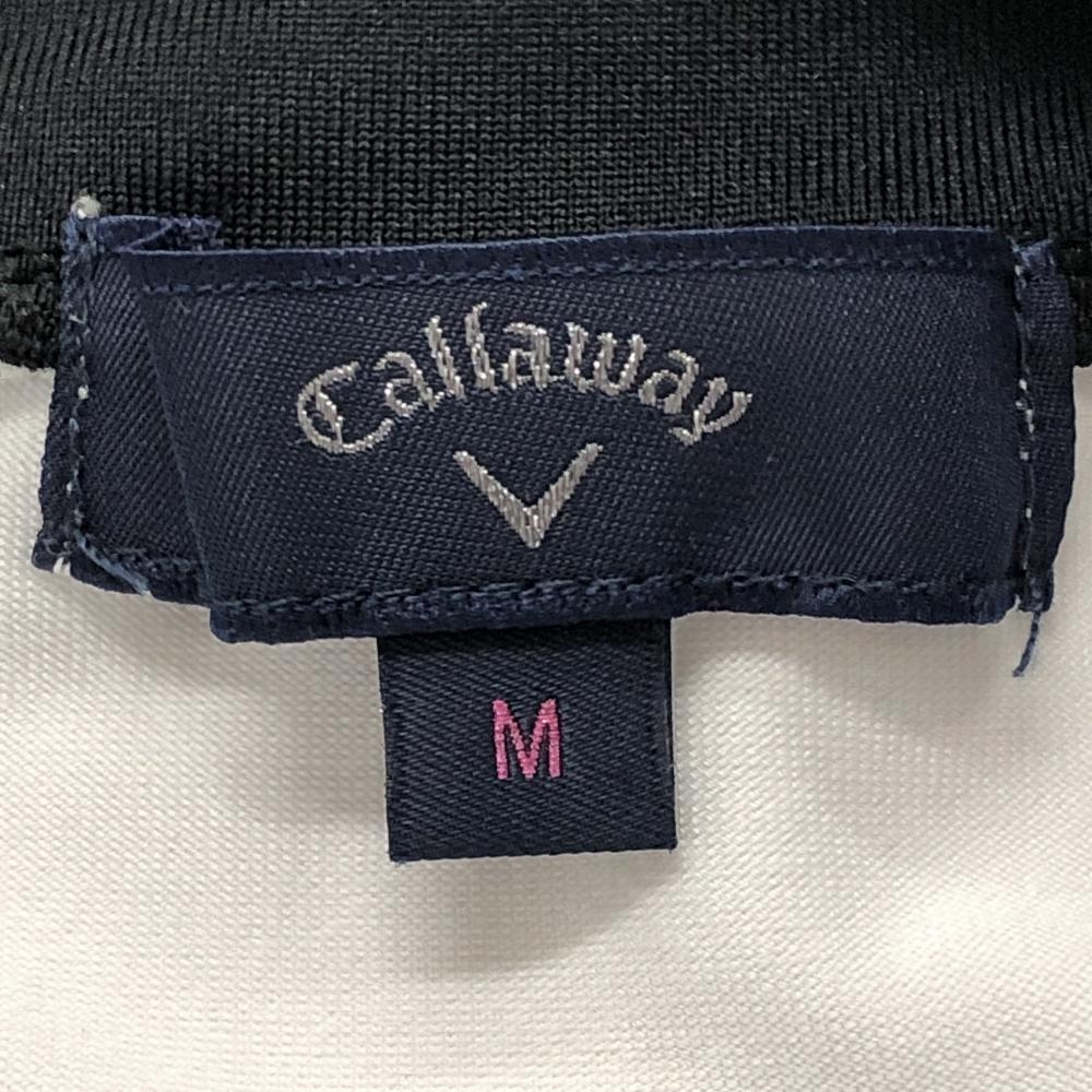 【美品】キャロウェイ 半袖ハイネックシャツ 白×黒×ライトピンク 一部メッシュ地 レディース M ゴルフウェア Callaway
