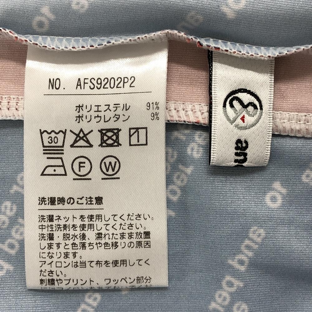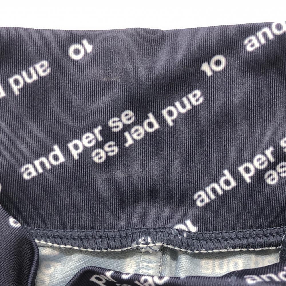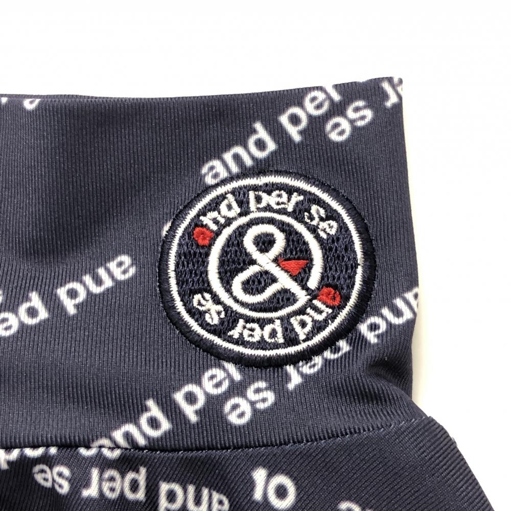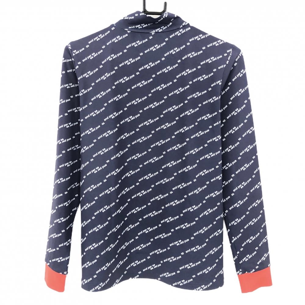 【美品】アンパスィ 長袖ハイネックシャツ ネイビー×白×レッド ロゴ総柄 フロントビッグロゴ レディース M ゴルフウェア and per se