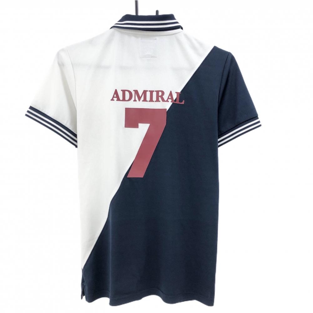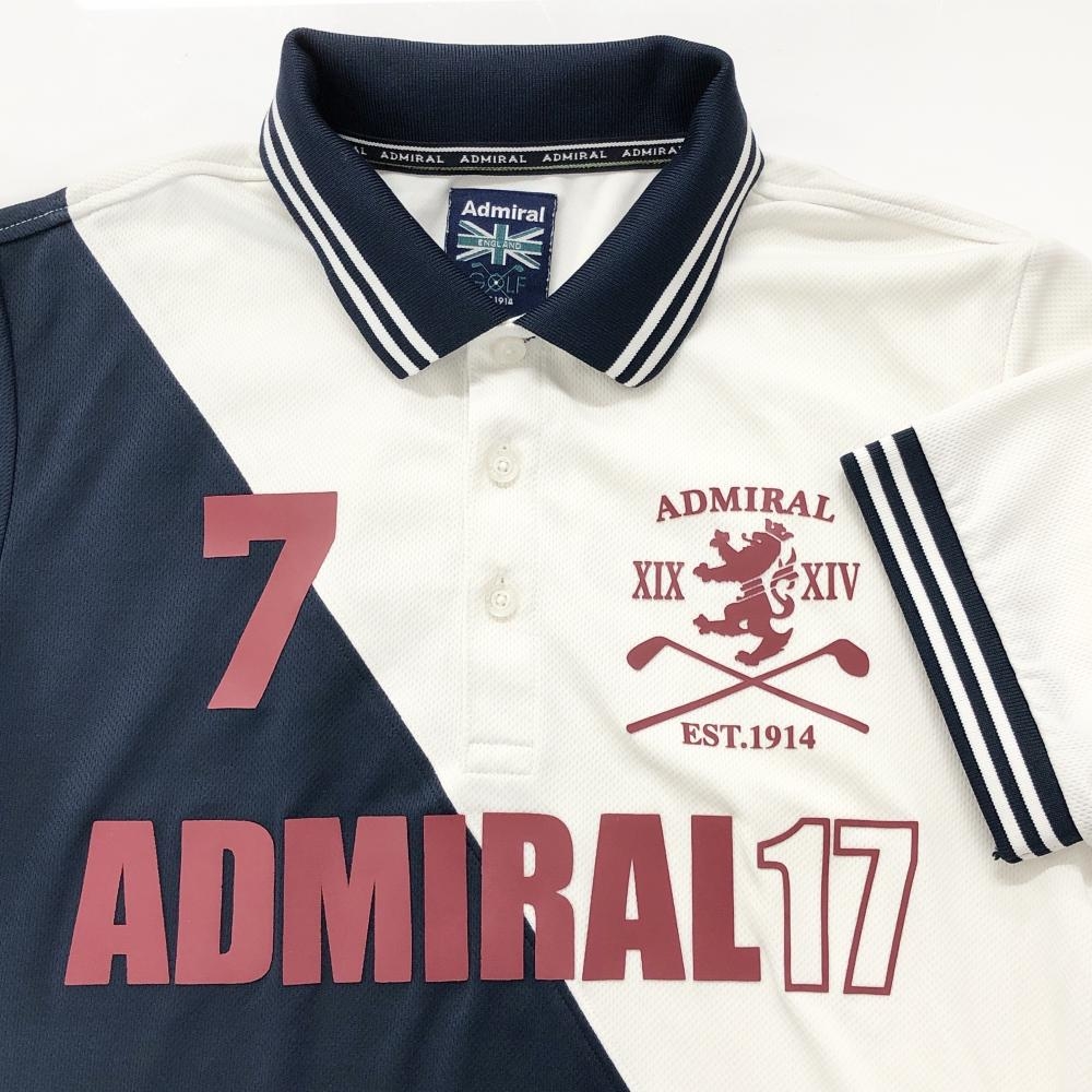 【美品】アドミラル 半袖ポロシャツ 白×ネイビー ロゴレッド 立体ロゴ メンズ M ゴルフウェア Admiral