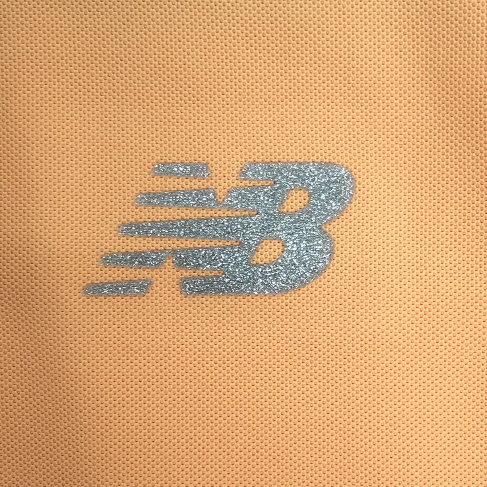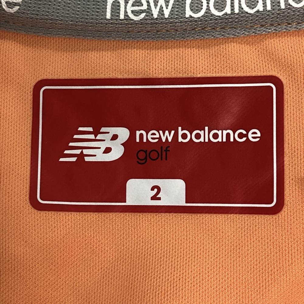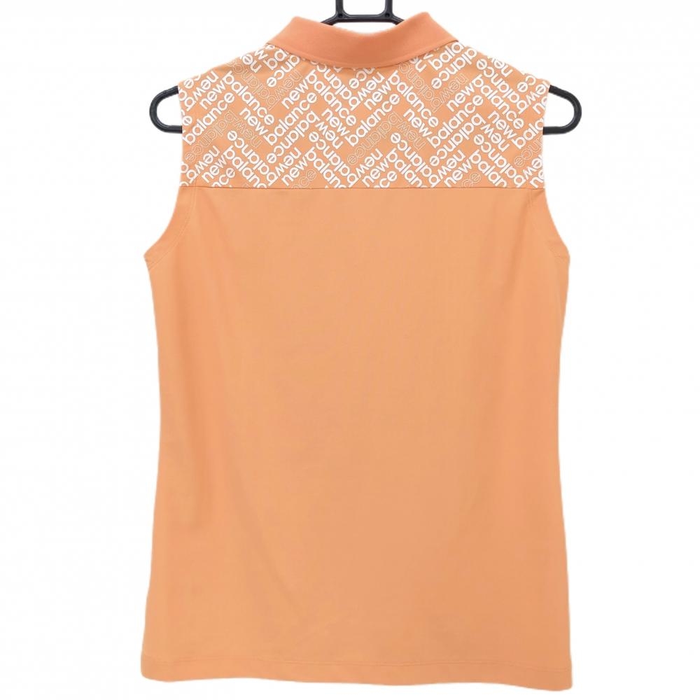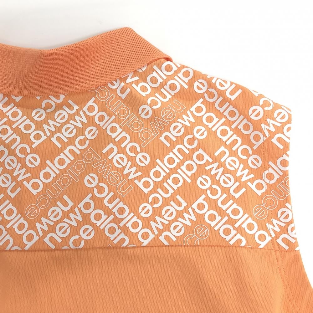 【超美品】ニューバランスゴルフ ノースリーブポロシャツ オレンジ×白 肩一部ロゴ総柄 レディース 2(L) ゴルフウェア New Balance