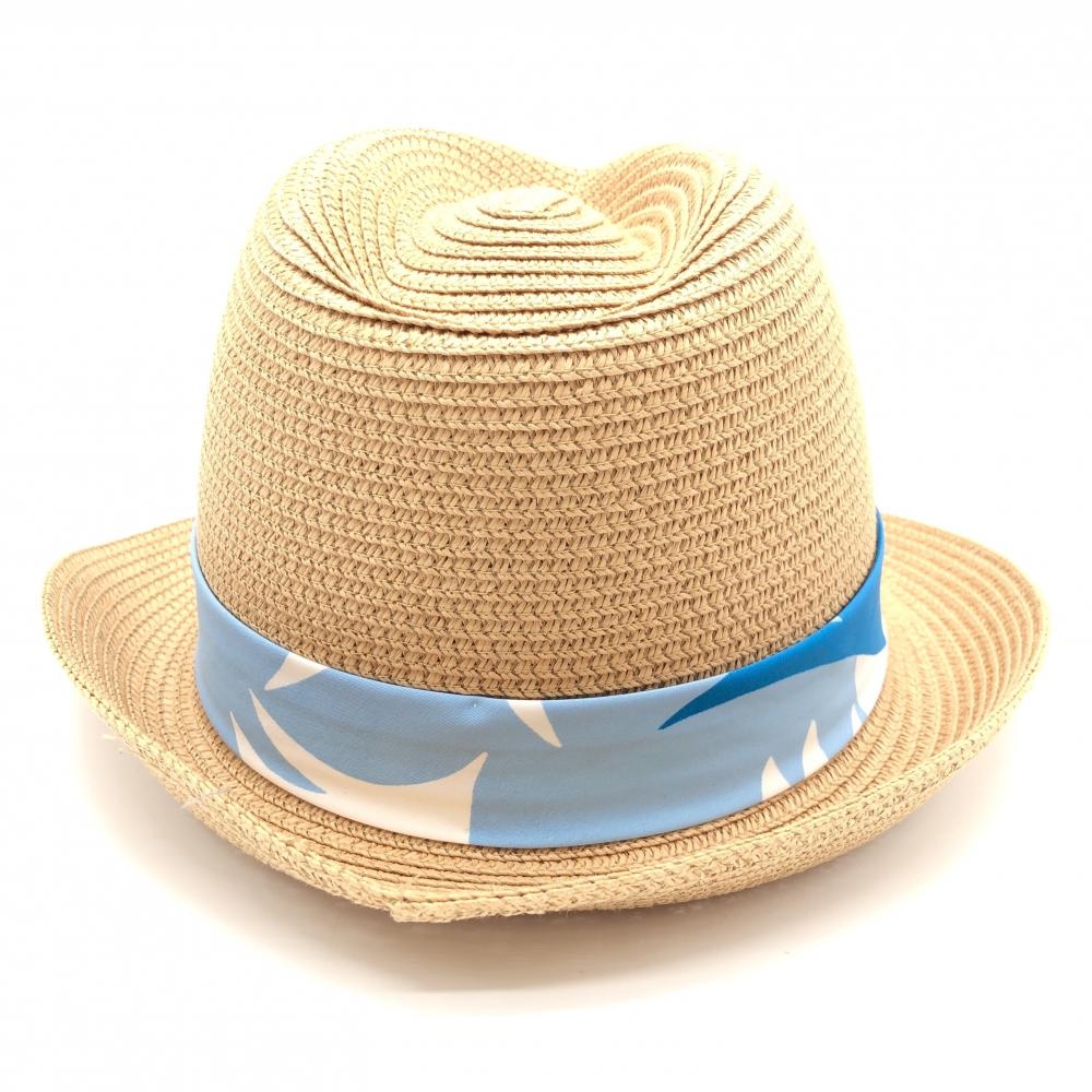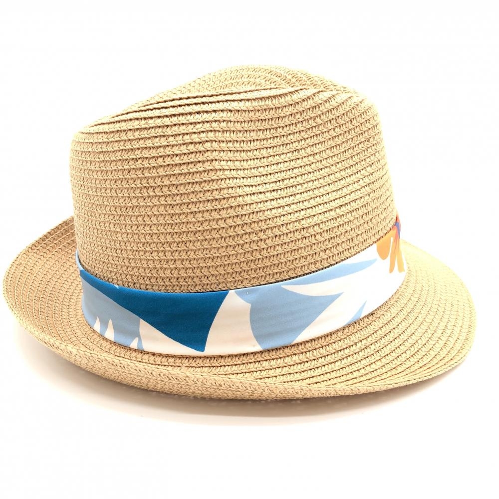 【超美品】ルコック 中折れハット ベージュ×ブルー 麦わら帽子 F(55-57cm) ゴルフウェア le coq sportif
