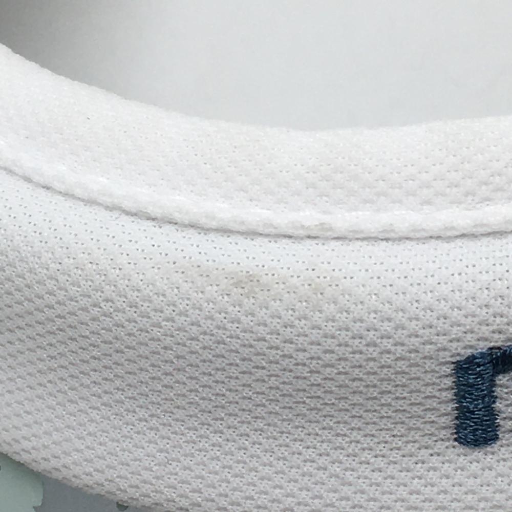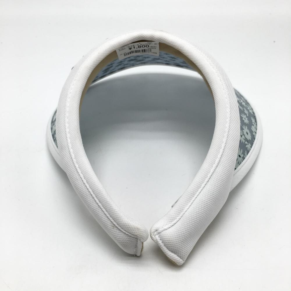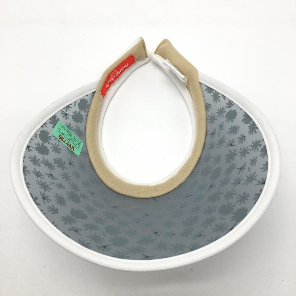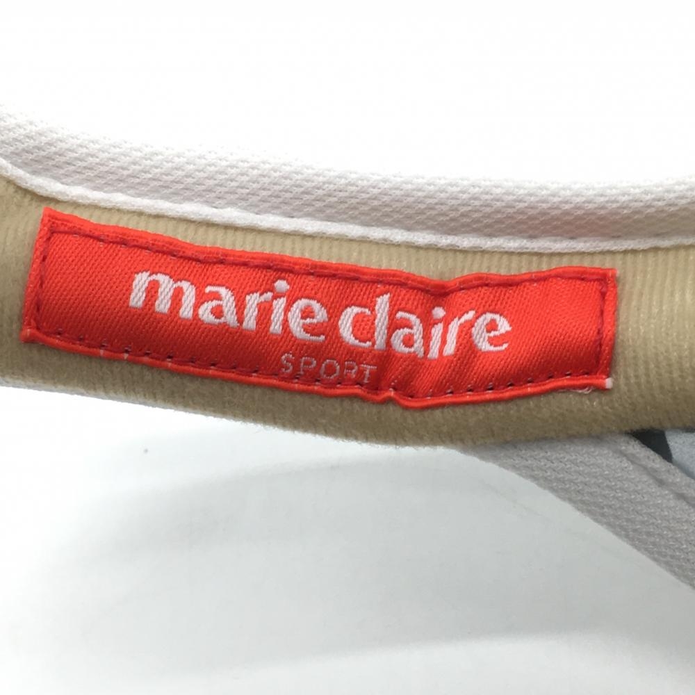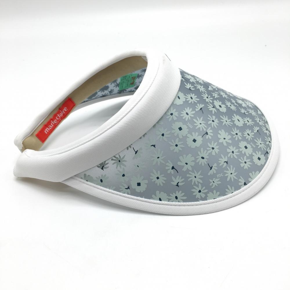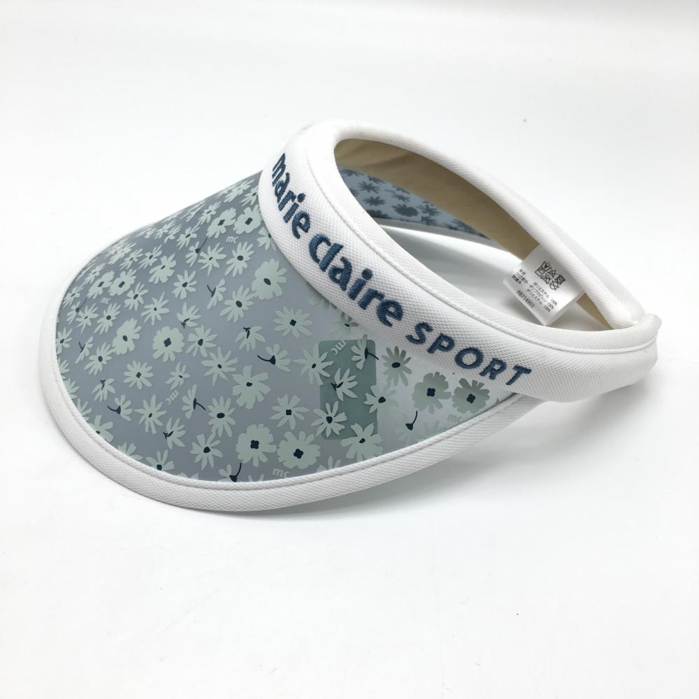 【美品】マリクレールスポール つば広サンバイザー 白×ブルー系 つば花柄 ロゴ刺しゅう レディース ゴルフウェア marie claire