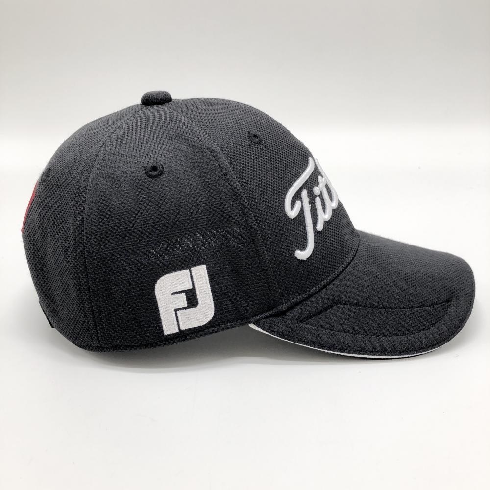 【美品】タイトリスト キャップ 黒×白 フットジョイ 立体ロゴ刺しゅう フリーサイズ(約57~59cm) ゴルフウェア TITLEIST