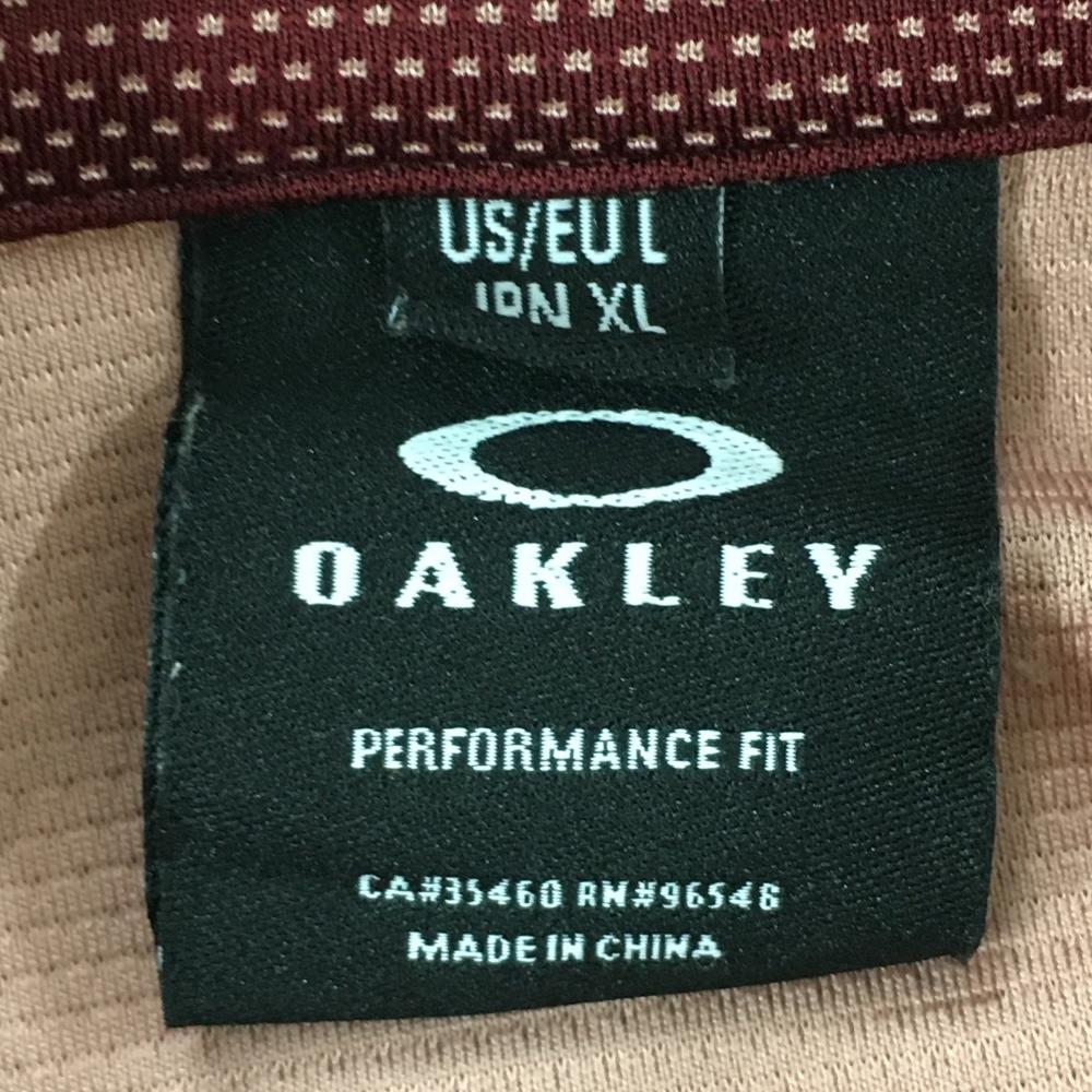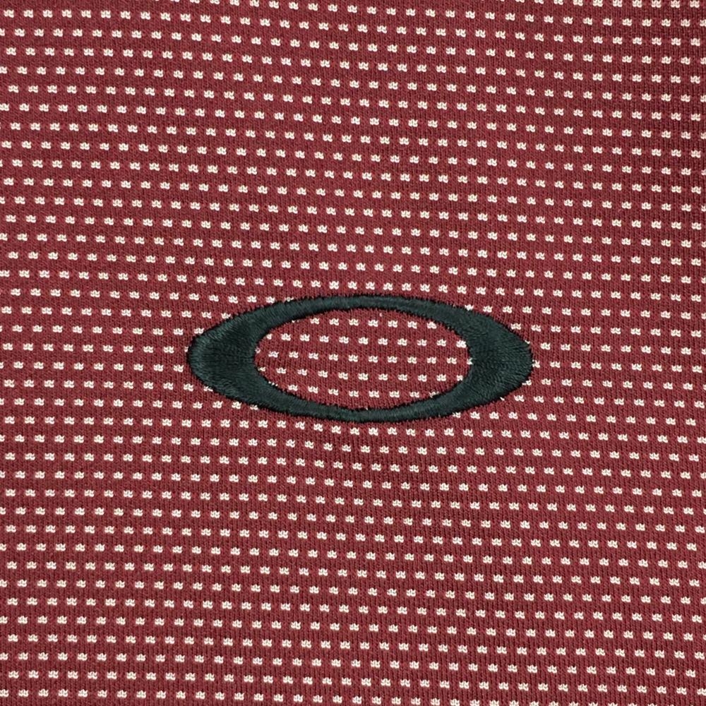 【超美品】オークリー 長袖ハイネックシャツ ボルドー×ワインレッド ロゴ黒 スクエアドット ハーフジップ メンズ XL ゴルフウェア Oakley