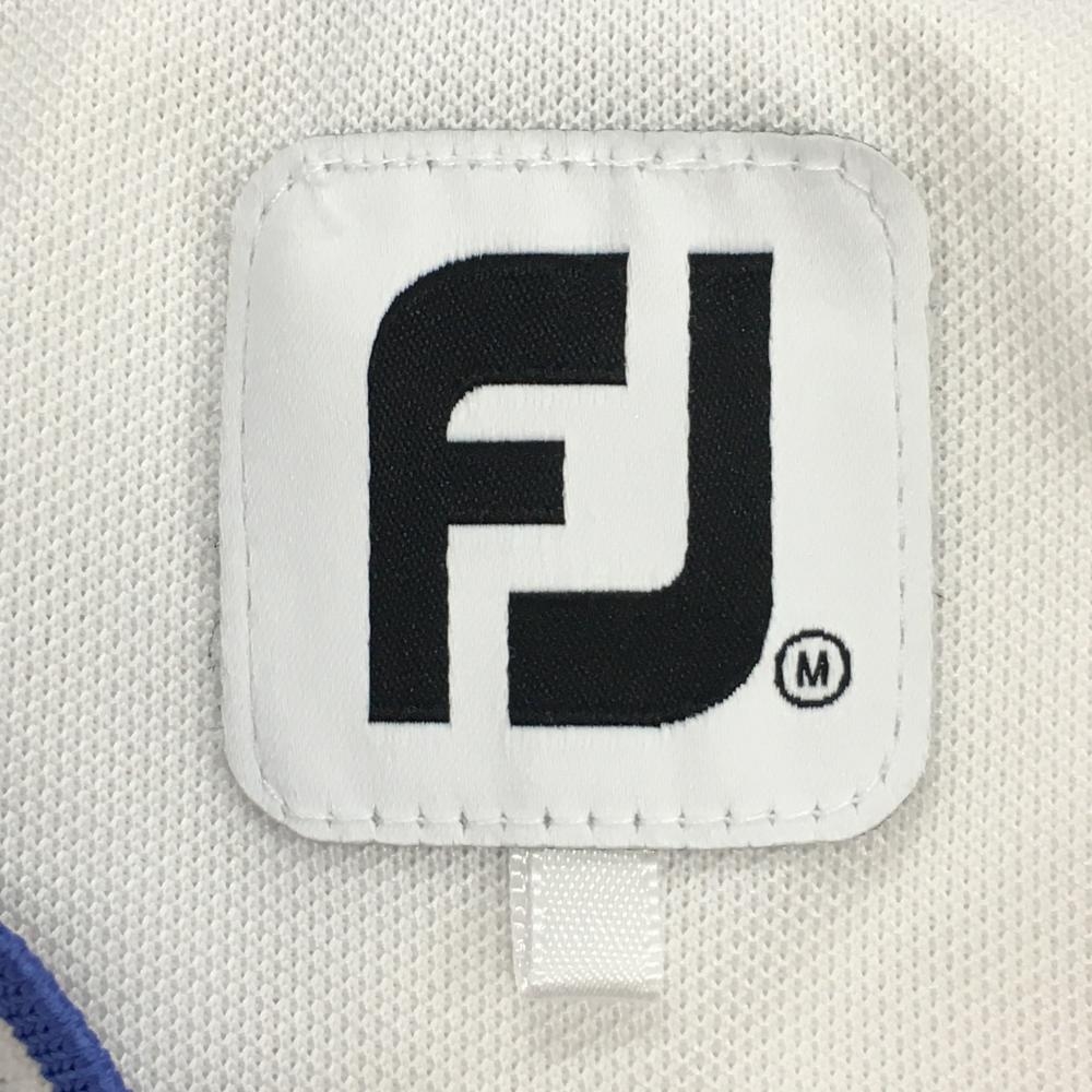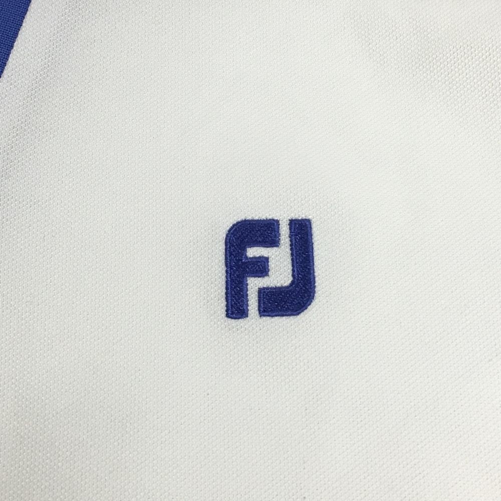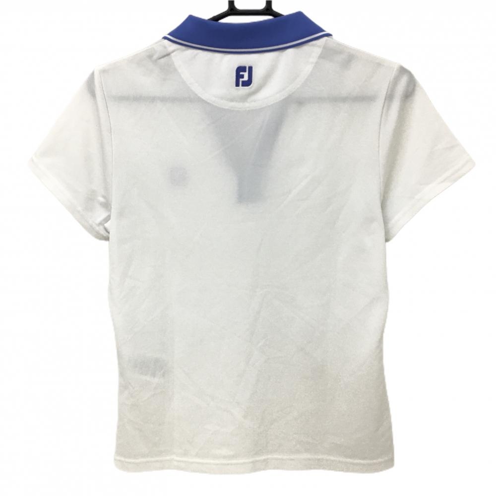 【超美品】フットジョイ 半袖スキッパーシャツ 白×ブルーパープル系 ロゴ刺しゅう レディース M ゴルフウェア FootJoy