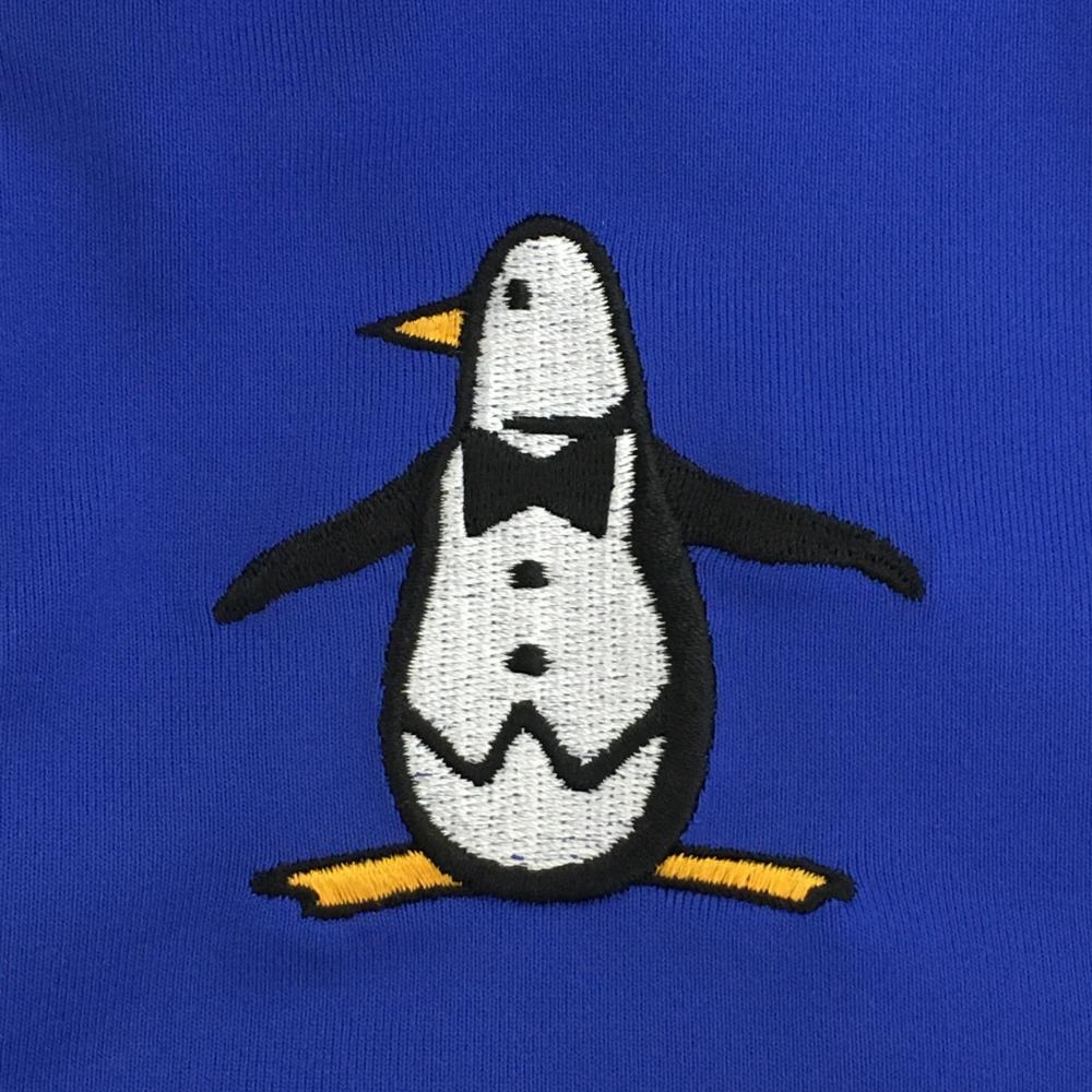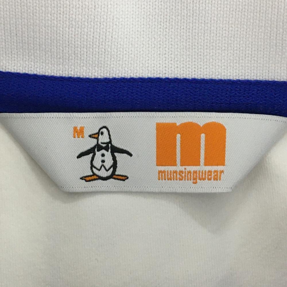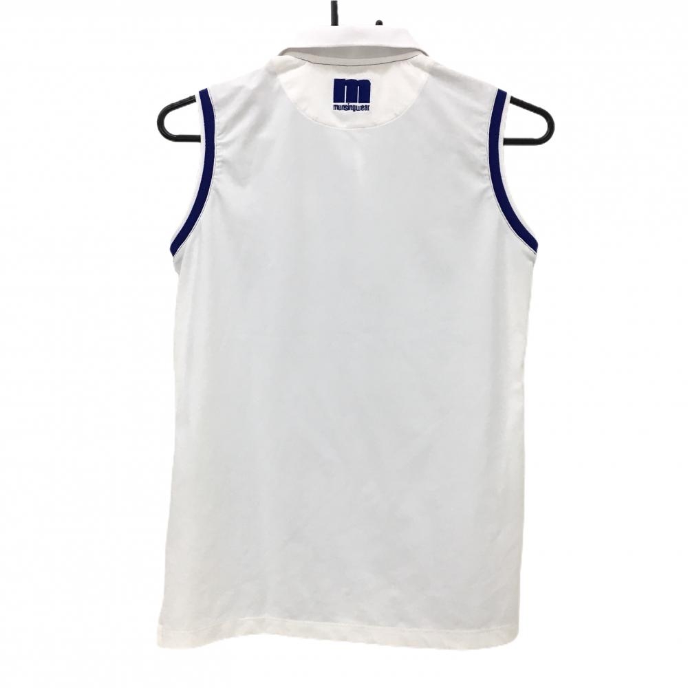 【超美品】マンシングウェア ノースリーブポロシャツ ブルー×白 ハーフジップ ロゴ刺しゅう レディース M ゴルフウェア Munsingwear