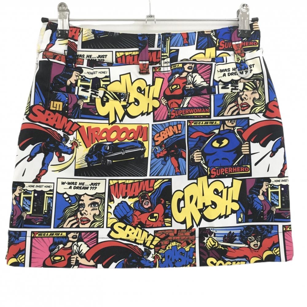 【超美品】ラウドマウス スカート 白×マルチカラー クラッシュ 内側インナーパンツ レディース S ゴルフウェア LOUDMOUTH