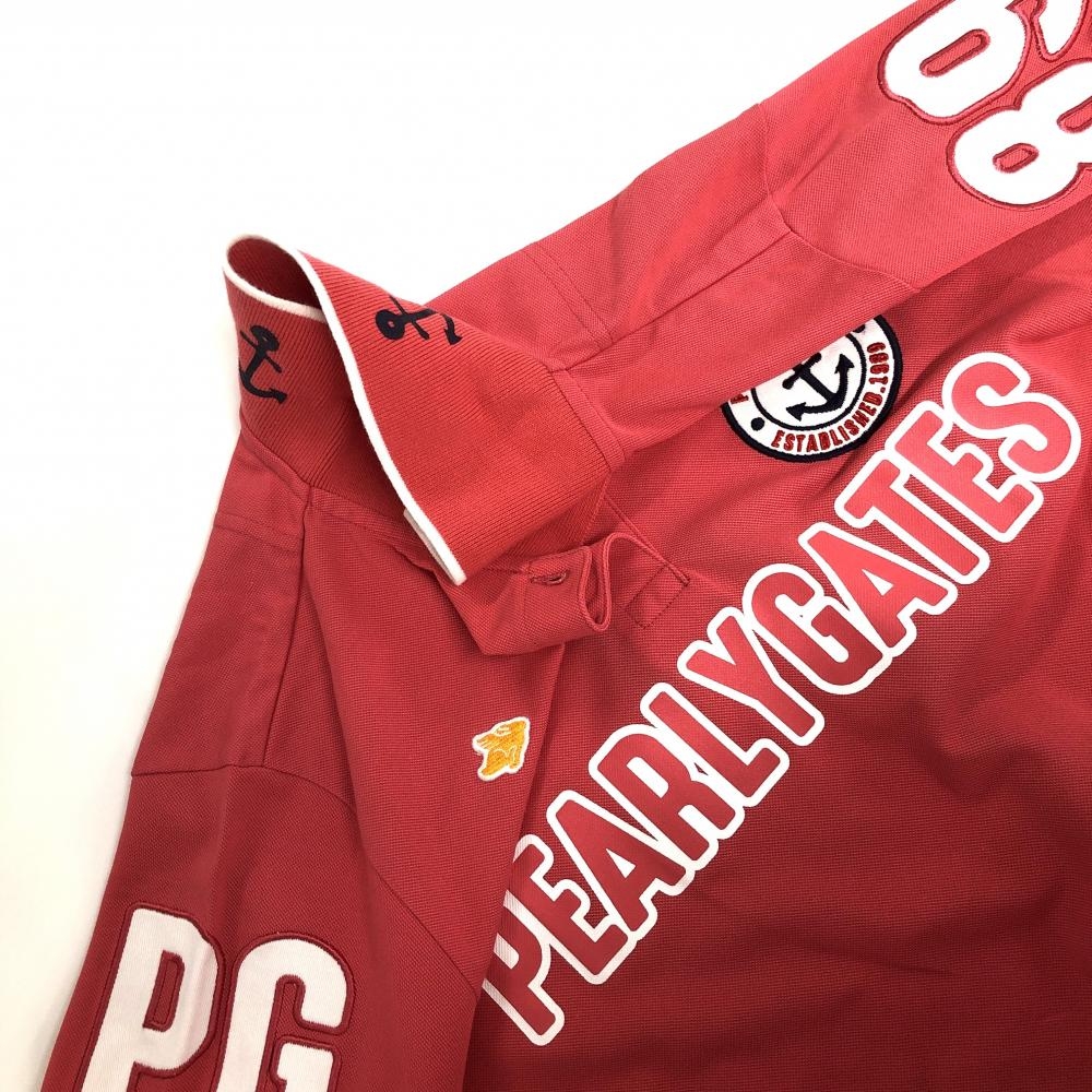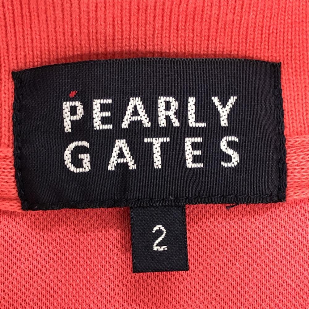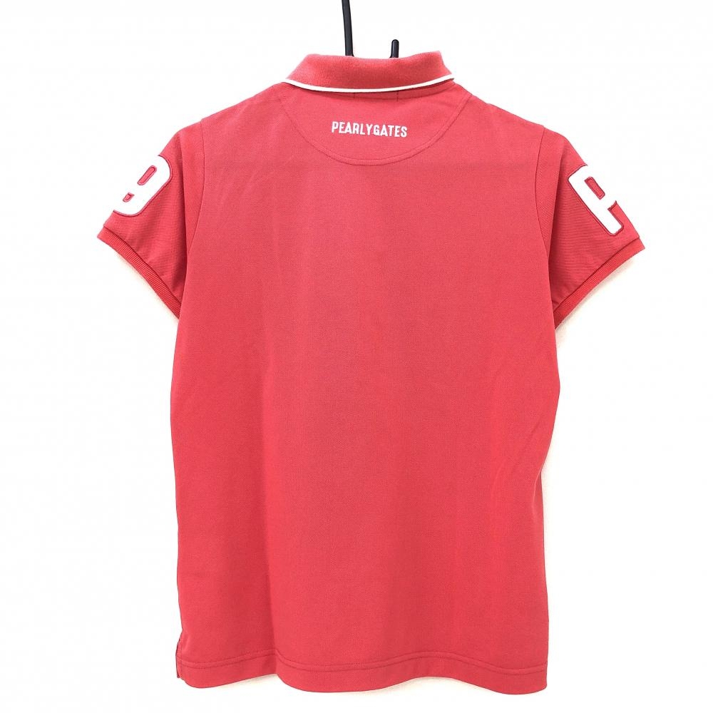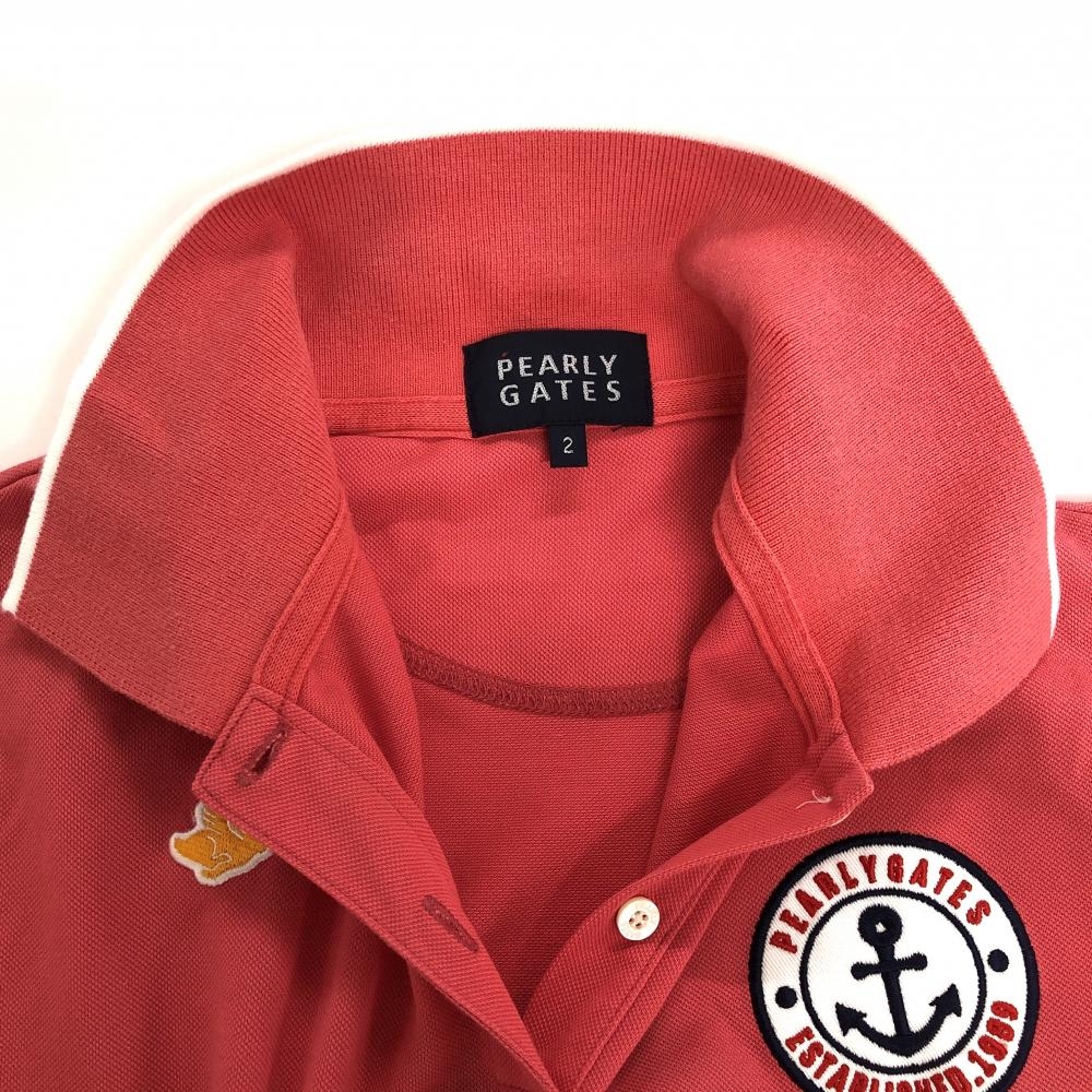 パーリーゲイツ 半袖ポロシャツ ピンク×白 胸プリント レディース 2(L) ゴルフウェア PEARLY GATES