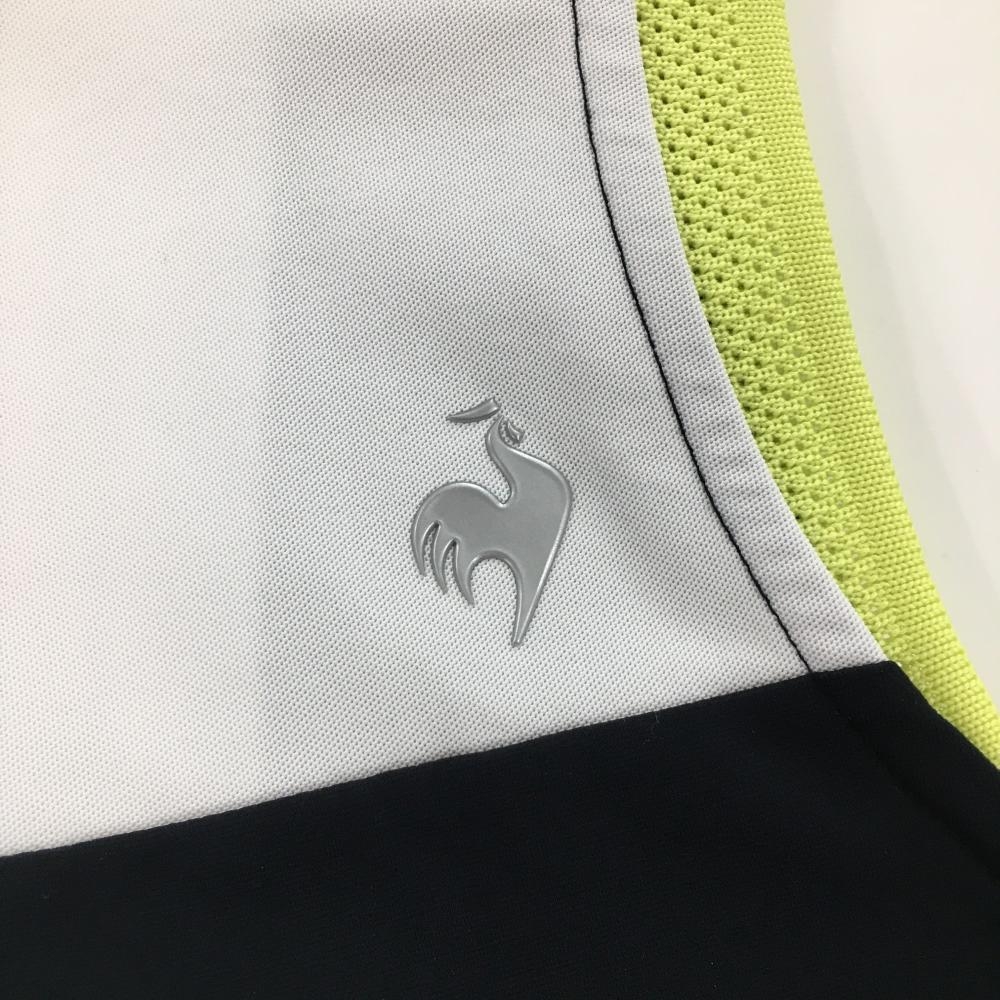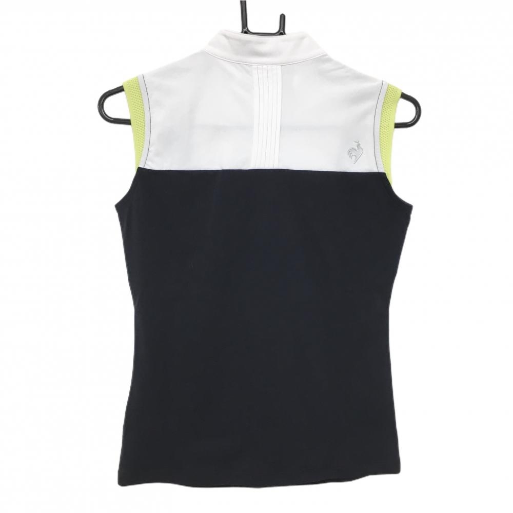 【超美品】ルコックゴルフ ノースリーブポロシャツ 黒×白 バイカラー ピンタック 袖口イエロー レディース S ゴルフウェア le coq sportif