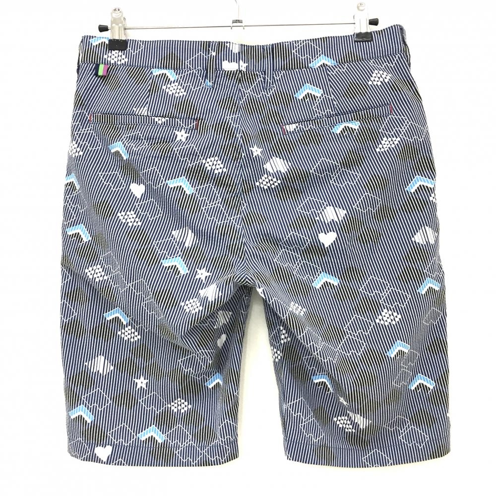 【美品】トヴホ ハーフパンツ ネイビー×白 細ストライプ 総柄 メンズ 02 ゴルフウェア tovho