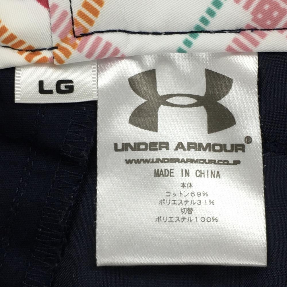 【美品】アンダーアーマー 七分丈パンツ ネイビー ロゴピンク ウエストサイドゴム レディース LG ゴルフウェア UNDER ARMOUR