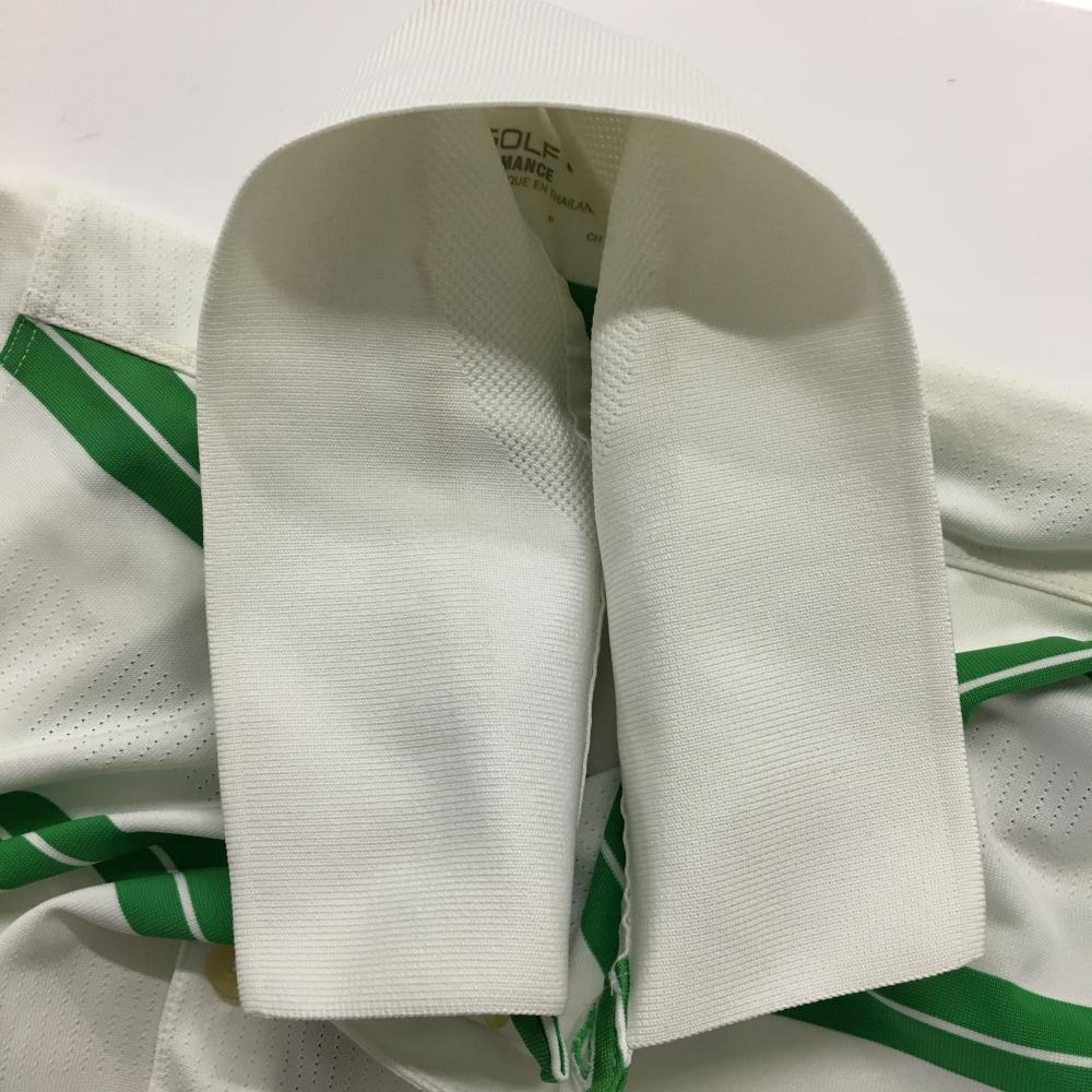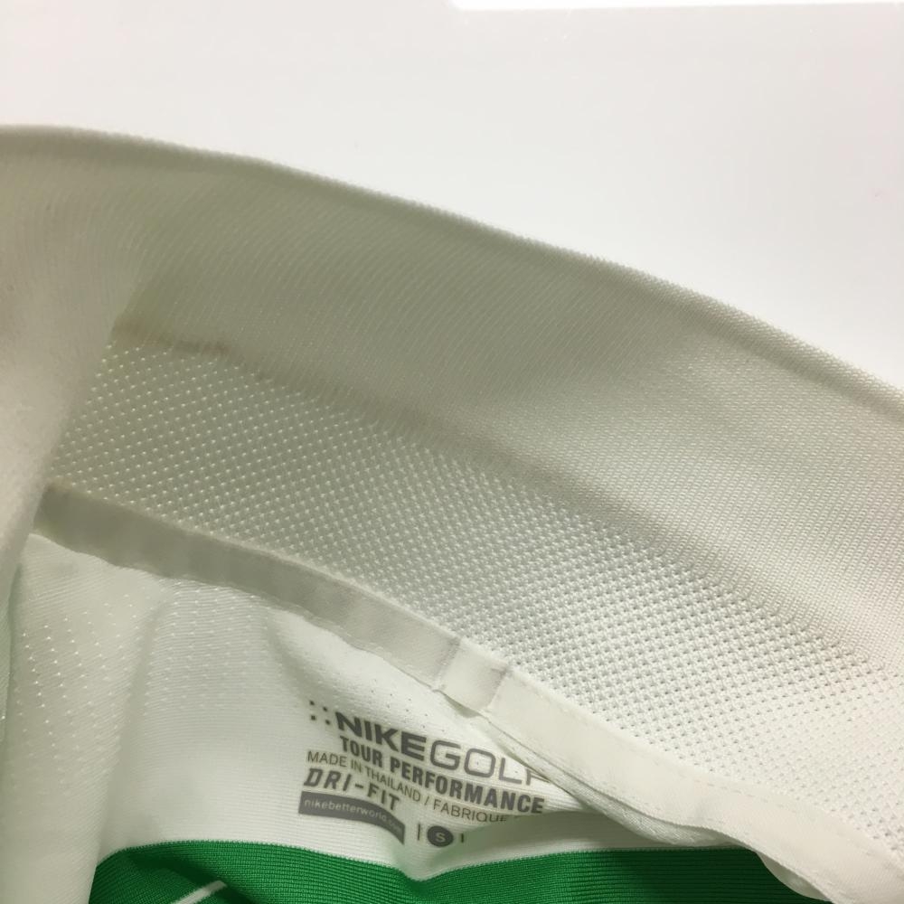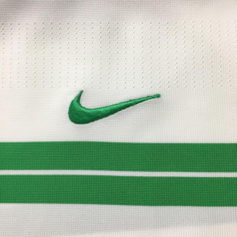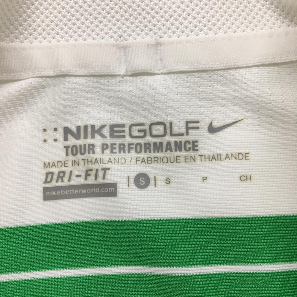ナイキゴルフ 半袖ポロシャツ 白×グリーン ボーダー DRI-FIT メンズ S ゴルフウェア NIKE