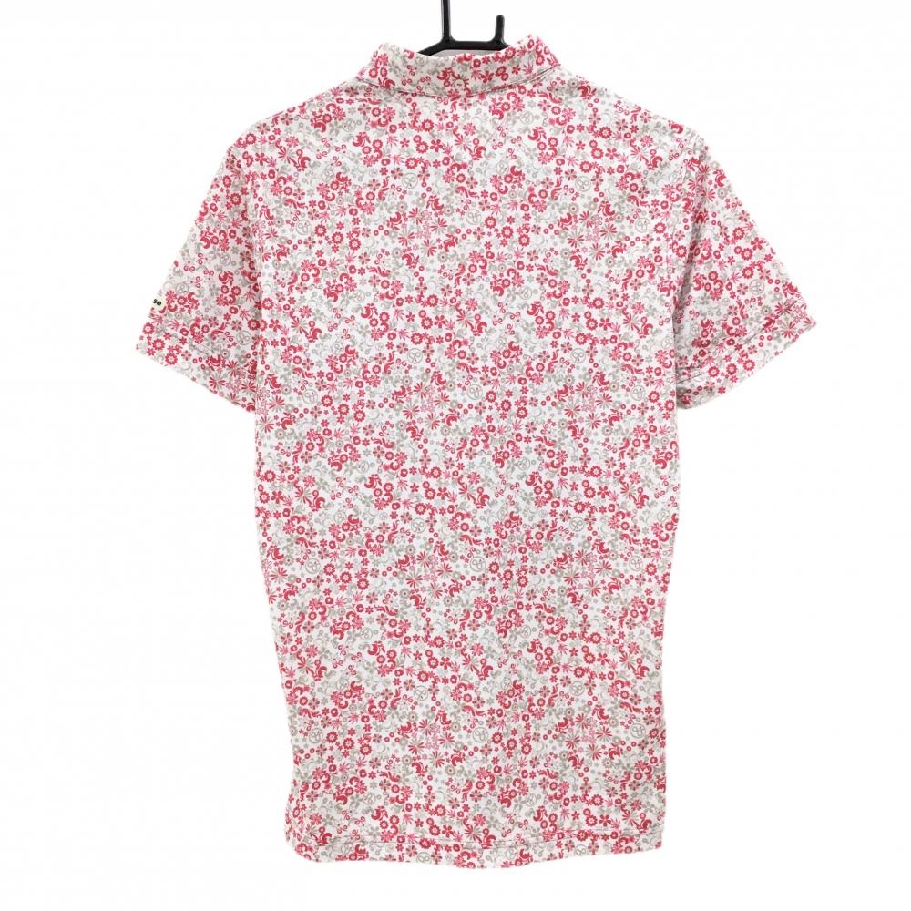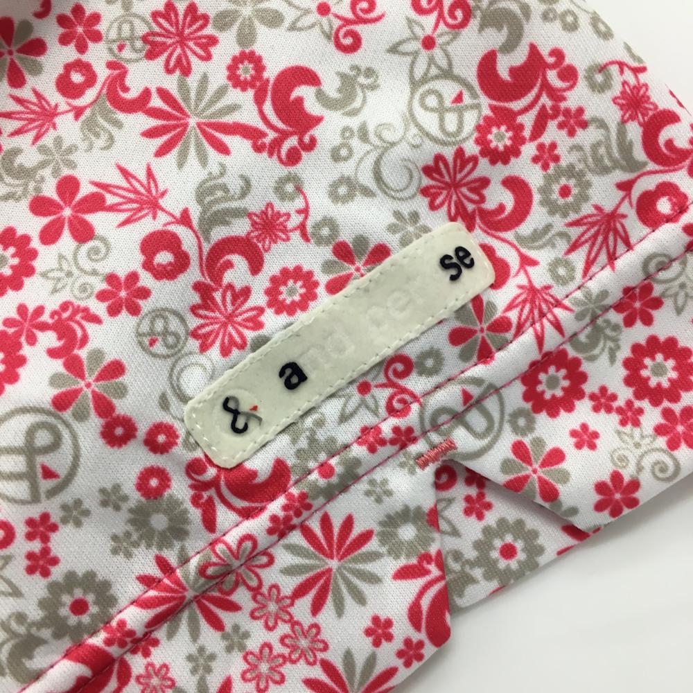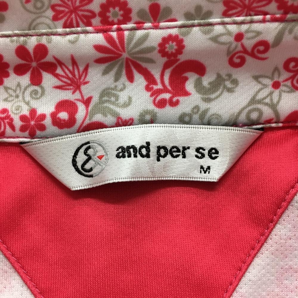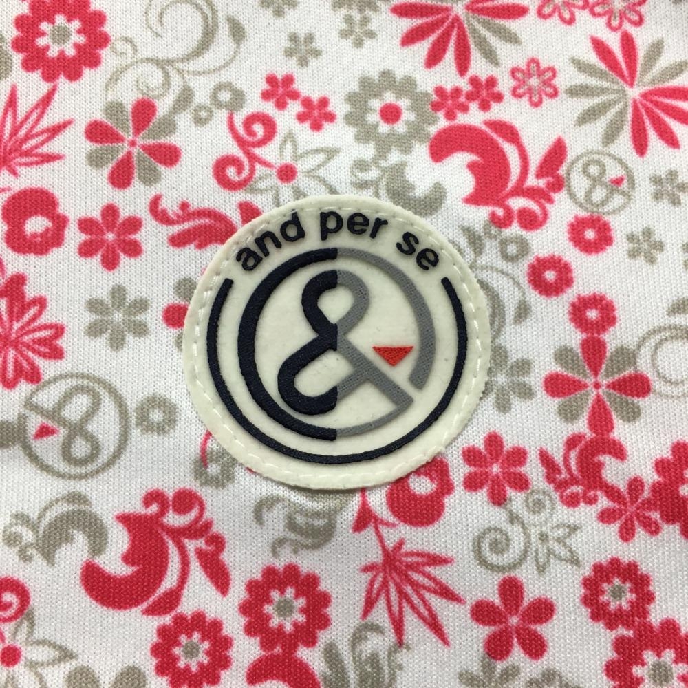 【美品】アンパスィ 半袖ポロシャツ 白×ピンク 総柄 花 メンズ M ゴルフウェア and per se