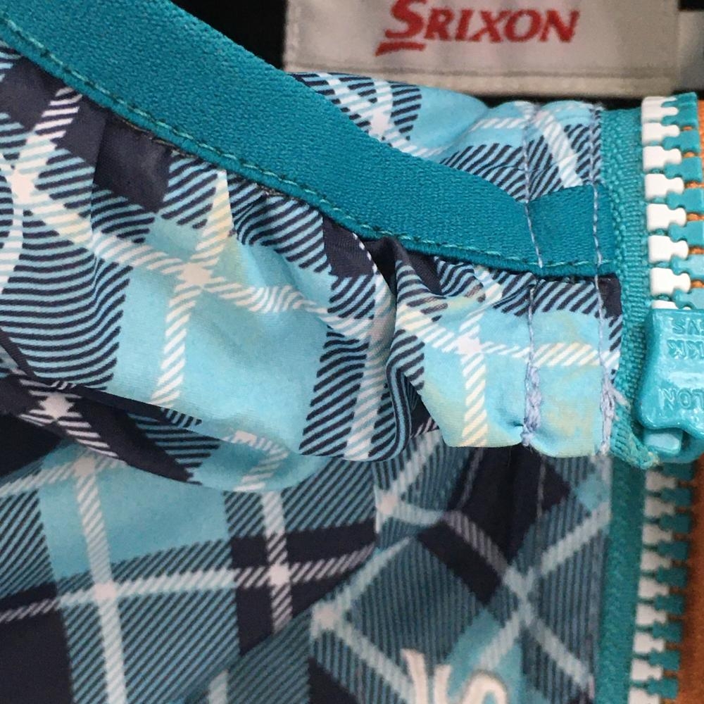 【美品】スリクソン ジャケット ライトブルー×ネイビー チェック 裾ドローコード 裏起毛 レディース L ゴルフウェア SRIXON